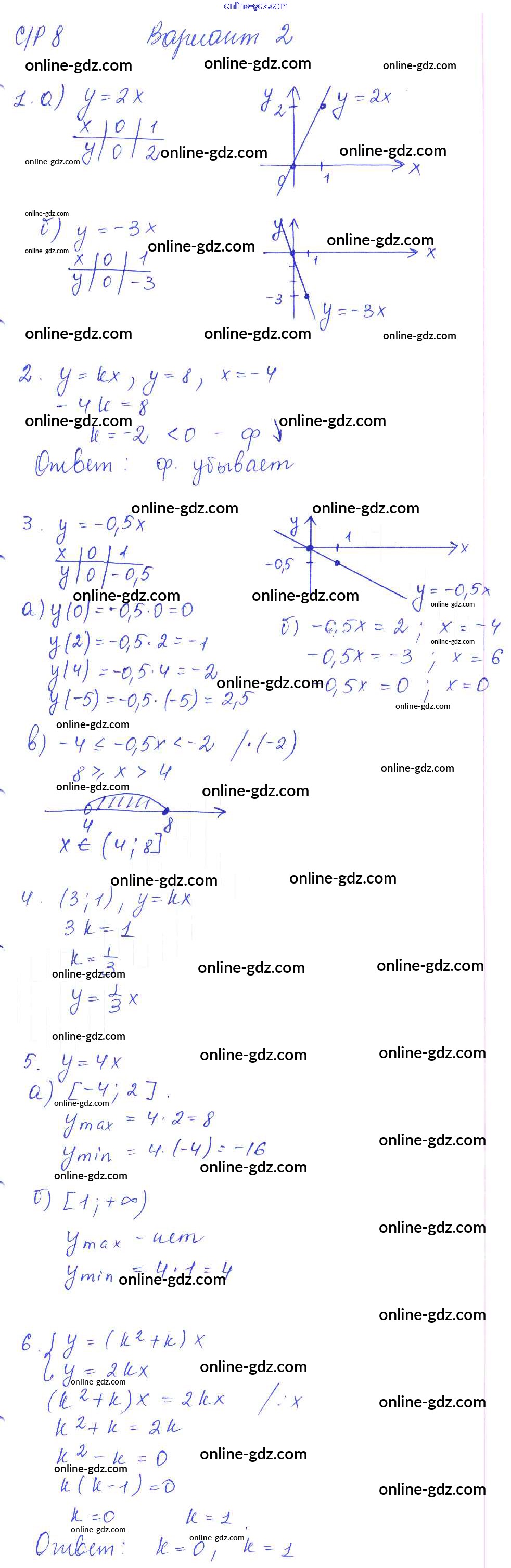 Готовые домашние задания по Алгебре за 7 класс Дидактические материалы Попов УМК 2016 - СР-8 Самостоятельные работы. Варианты 2