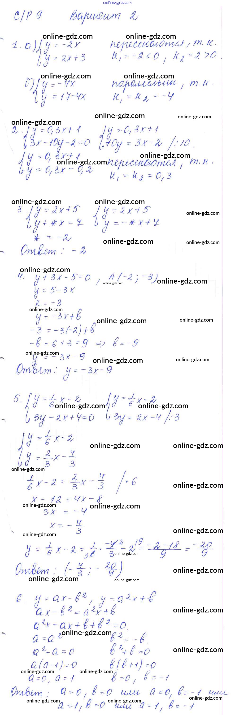 Готовые домашние задания по Алгебре за 7 класс Дидактические материалы Попов УМК 2016 - СР-9 Самостоятельные работы. Варианты 2