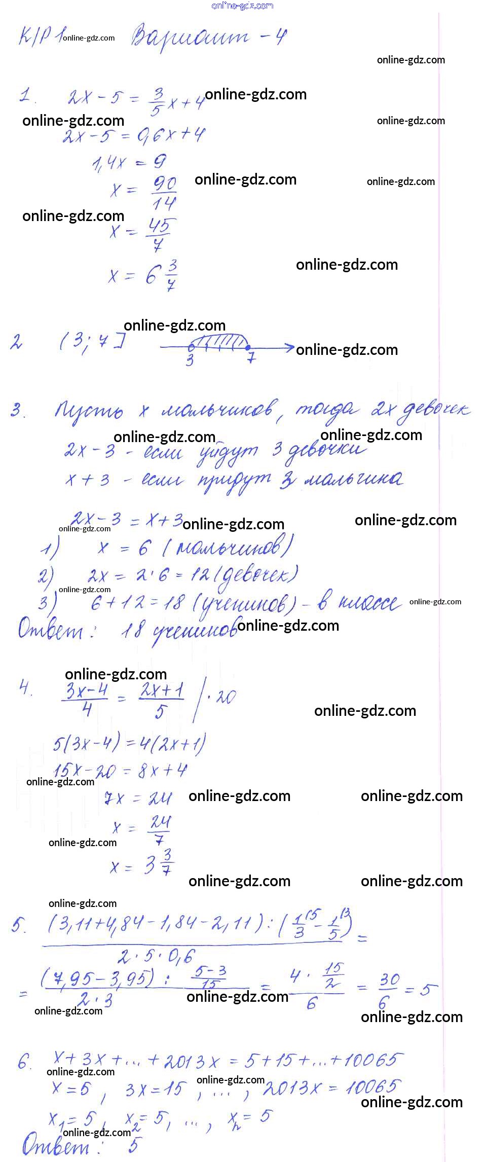 Готовые домашние задания по Алгебре за 7 класс Дидактические материалы Попов УМК 2016 - КР-1 Контрольные работы. Варианты 4