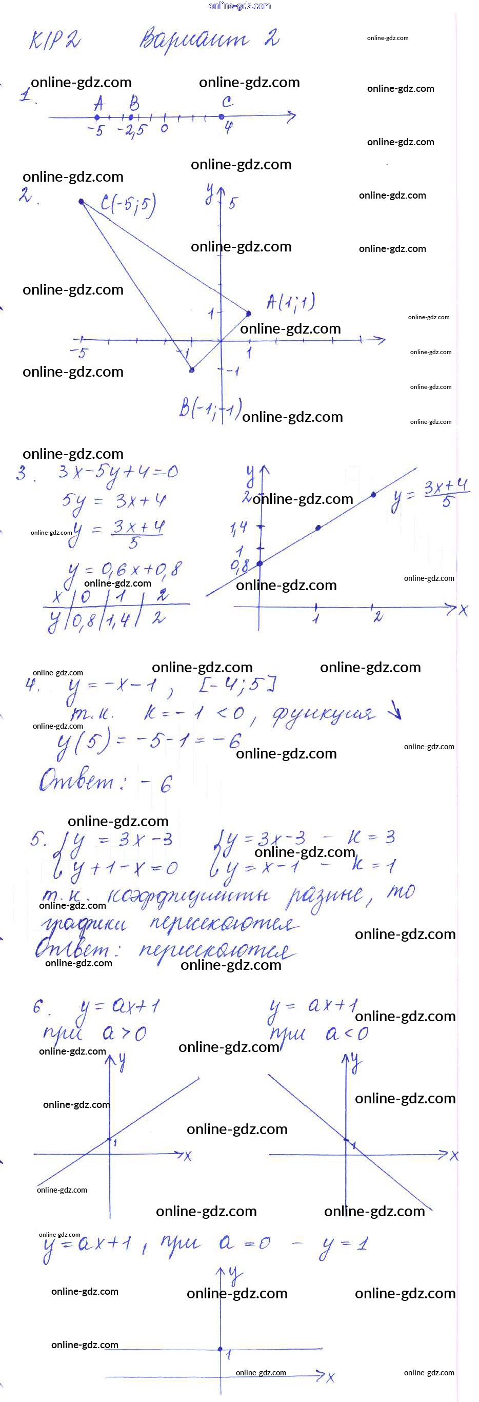 Готовые домашние задания по Алгебре за 7 класс Дидактические материалы Попов УМК 2016 - КР-2 Контрольные работы. Варианты 2