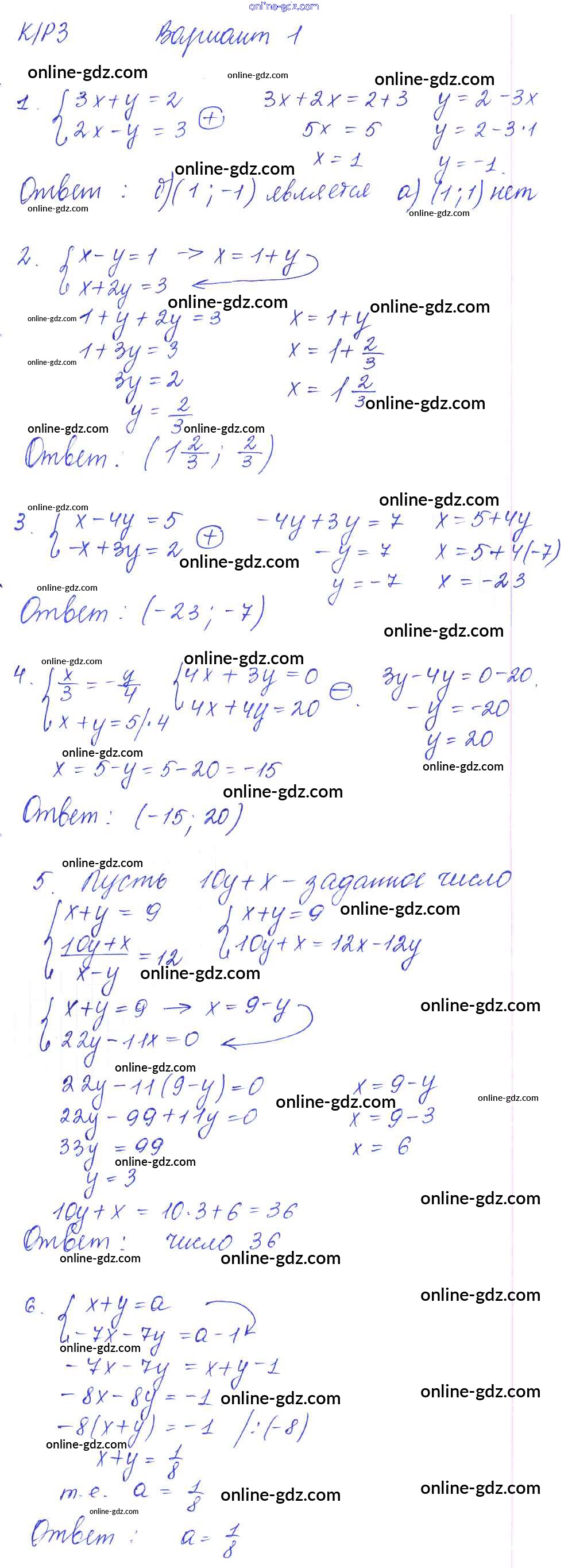 Готовые домашние задания по Алгебре за 7 класс Дидактические материалы Попов УМК 2016 - КР-3 Контрольные работы. Варианты 1