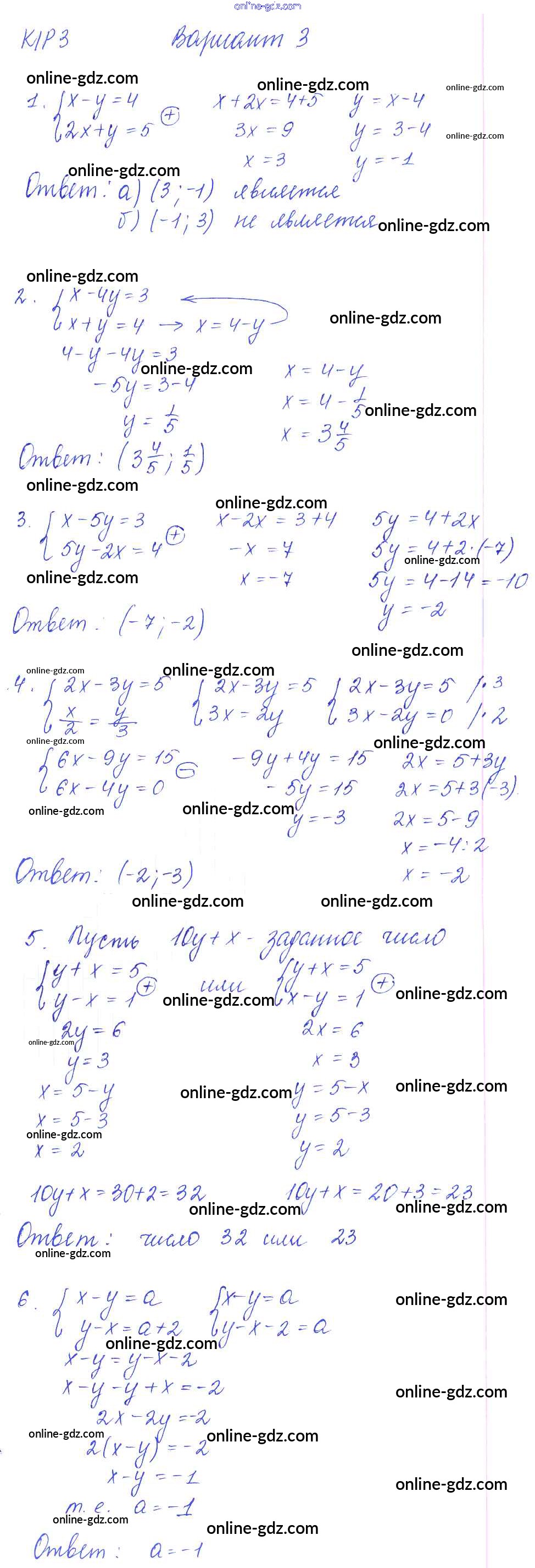 Готовые домашние задания по Алгебре за 7 класс Дидактические материалы Попов УМК 2016 - КР-3 Контрольные работы. Варианты 3