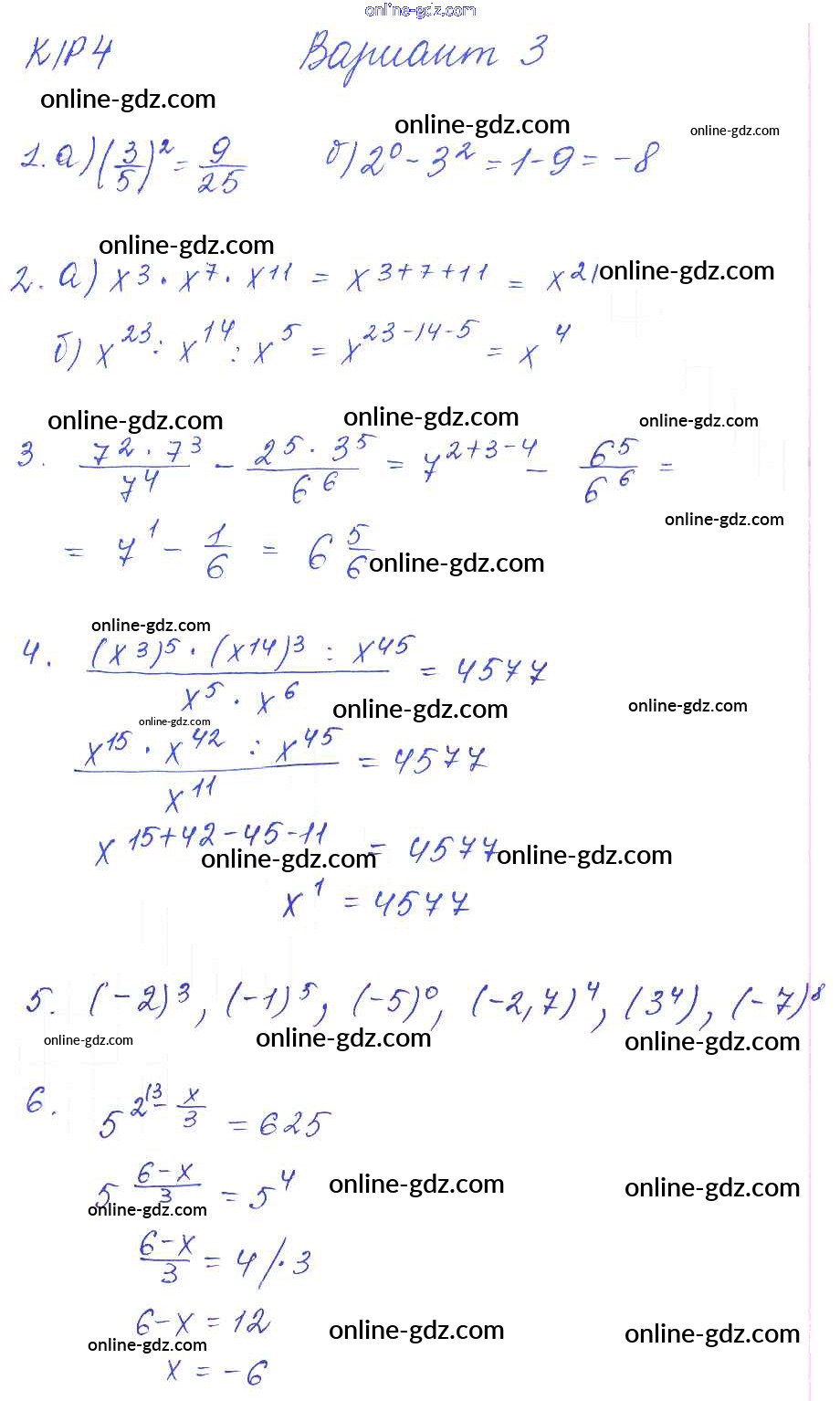 Готовые домашние задания по Алгебре за 7 класс Дидактические материалы Попов УМК 2016 - КР-4 Контрольные работы. Варианты 3