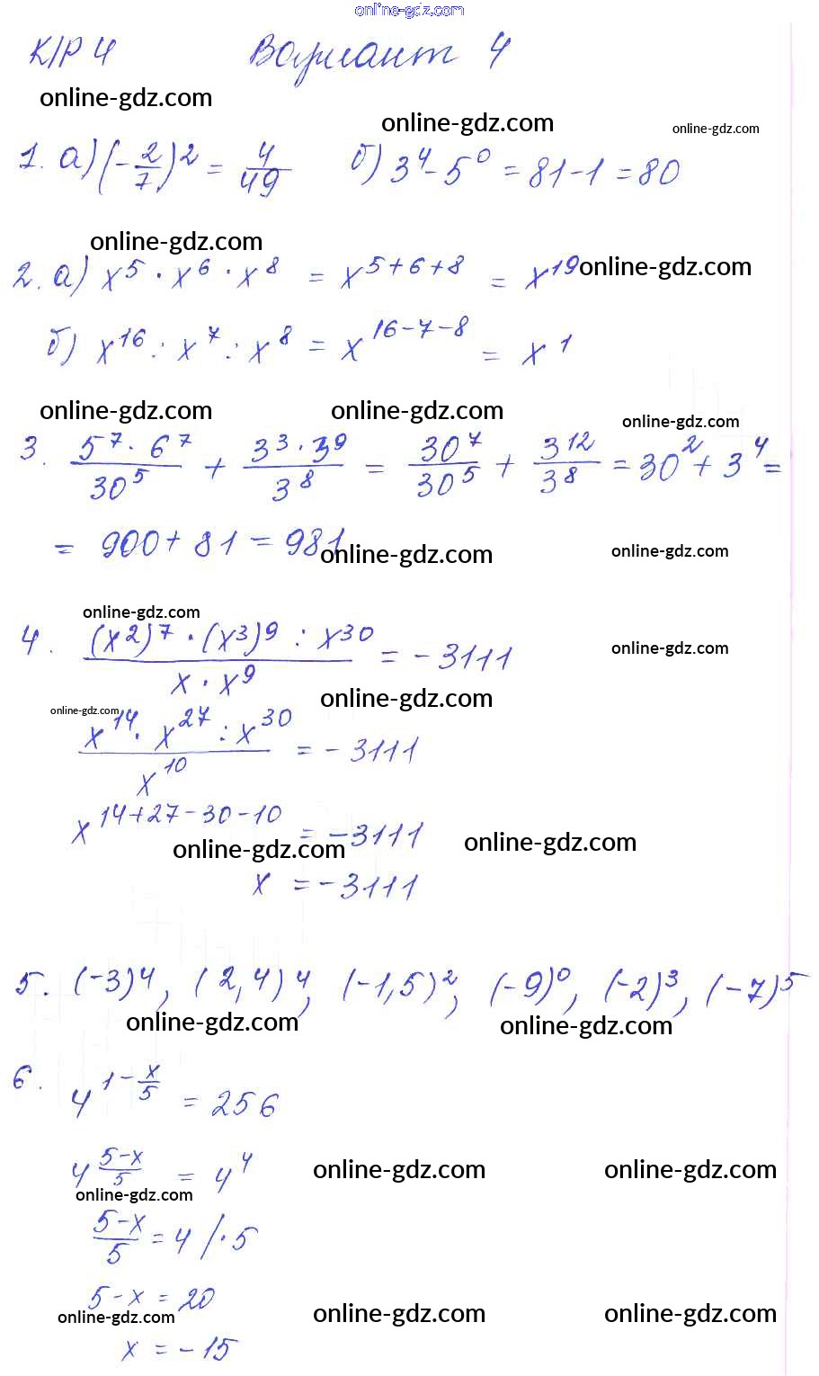 Готовые домашние задания по Алгебре за 7 класс Дидактические материалы Попов УМК 2016 - КР-4 Контрольные работы. Варианты 4