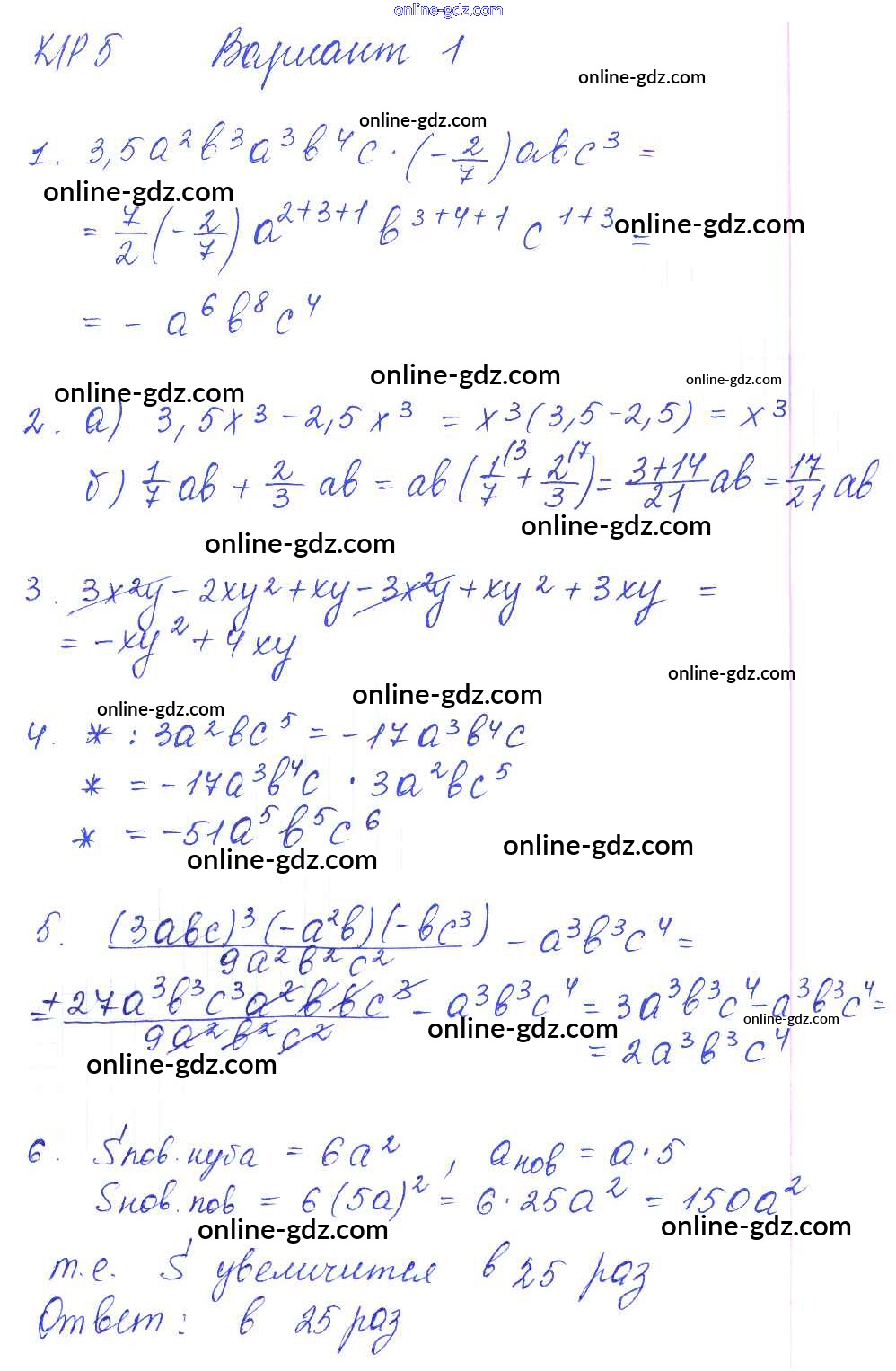 Готовые домашние задания по Алгебре за 7 класс Дидактические материалы Попов УМК 2016 - КР-5 Контрольные работы. Варианты 1