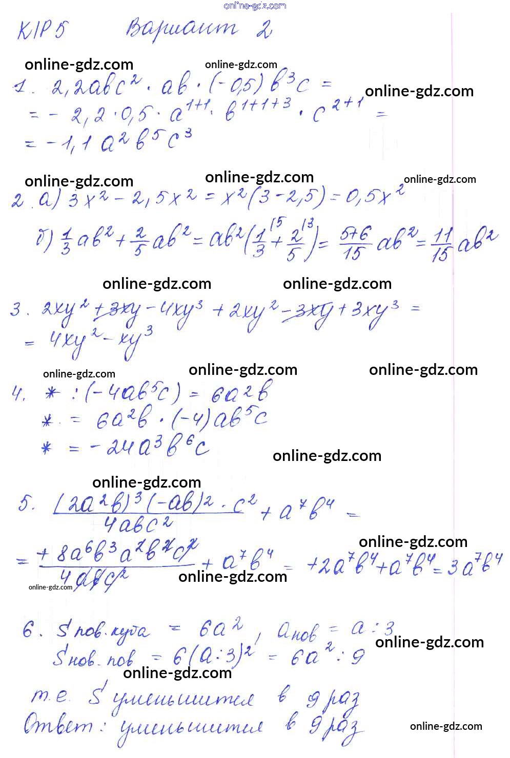 Готовые домашние задания по Алгебре за 7 класс Дидактические материалы Попов УМК 2016 - КР-5 Контрольные работы. Варианты 2