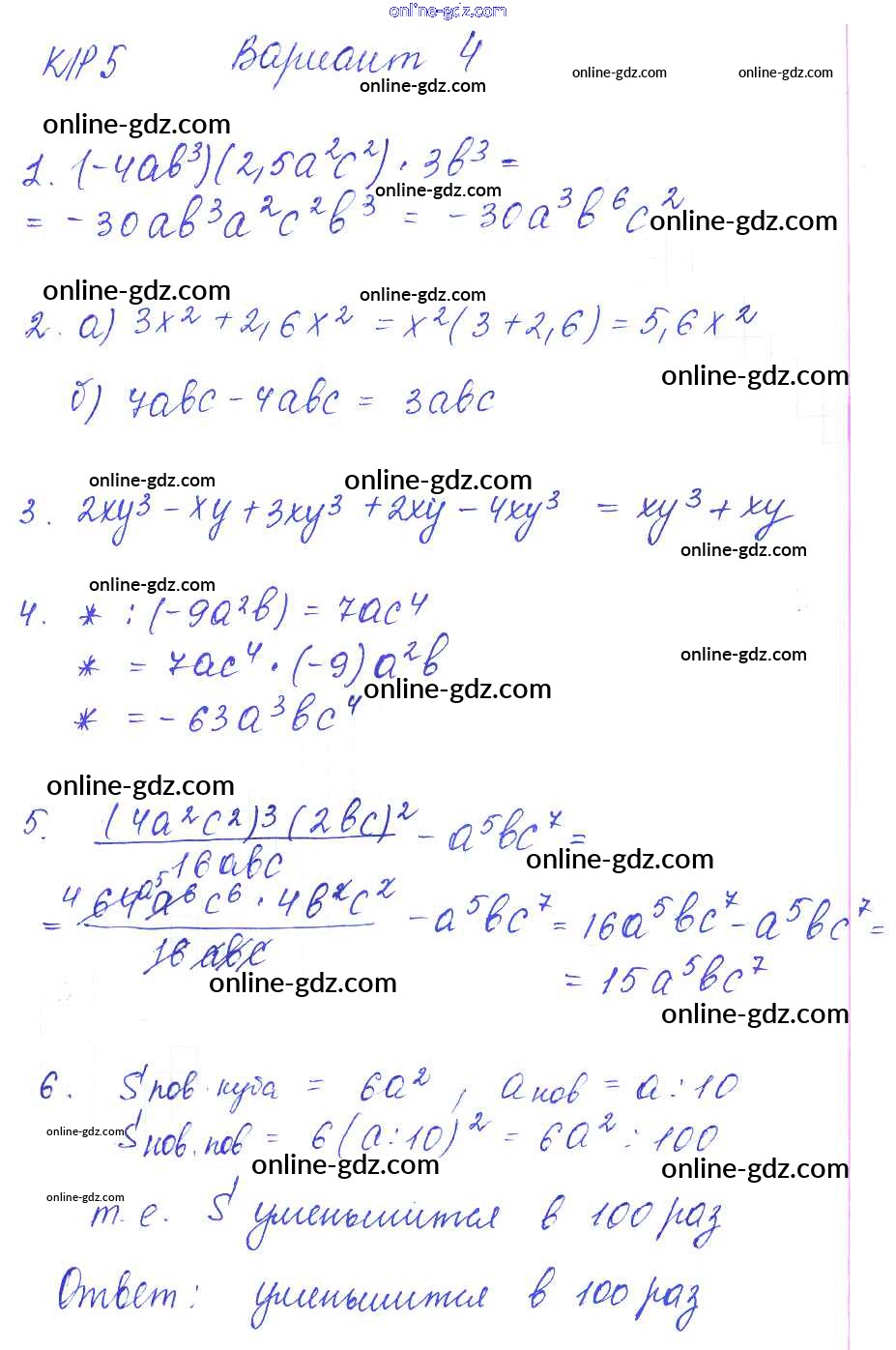 Готовые домашние задания по Алгебре за 7 класс Дидактические материалы Попов УМК 2016 - КР-5 Контрольные работы. Варианты 4