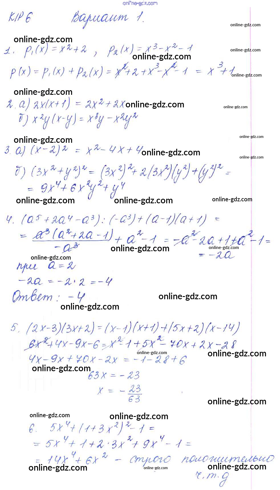 Готовые домашние задания по Алгебре за 7 класс Дидактические материалы Попов УМК 2016 - КР-6 Контрольные работы. Варианты 1
