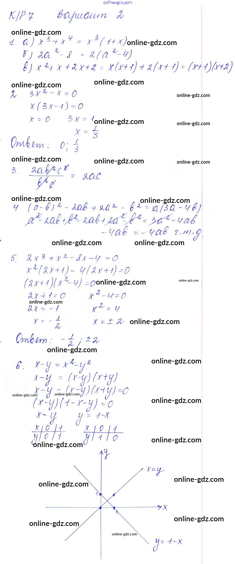 Готовые домашние задания по Алгебре за 7 класс Дидактические материалы Попов УМК 2016 - КР-7 Контрольные работы. Варианты 2