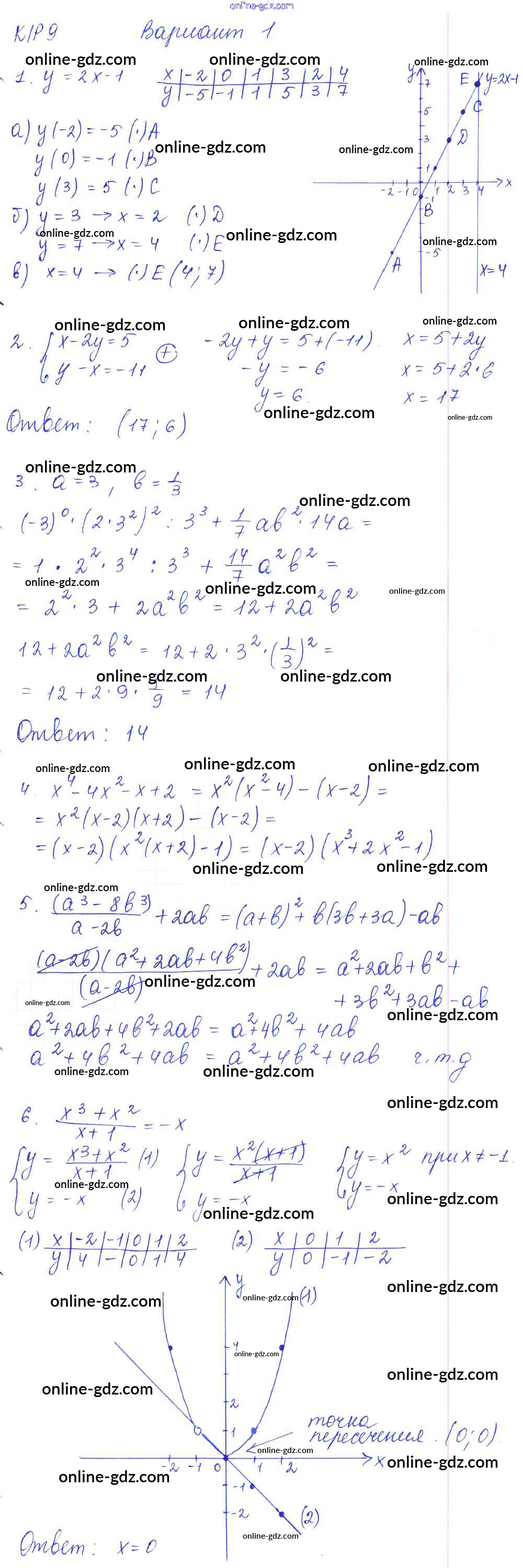 Готовые домашние задания по Алгебре за 7 класс Дидактические материалы Попов УМК 2016 - КР-9 Контрольные работы. Варианты 1