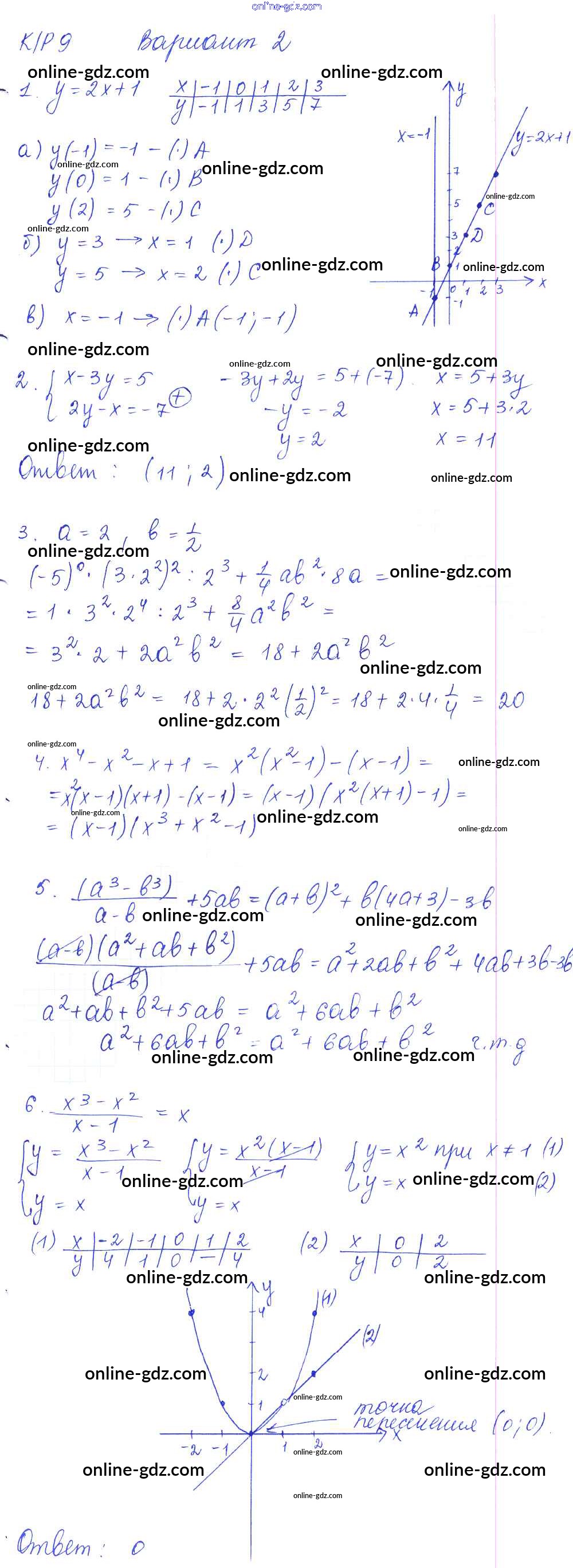 Готовые домашние задания по Алгебре за 7 класс Дидактические материалы Попов УМК 2016 - КР-9 Контрольные работы. Варианты 2