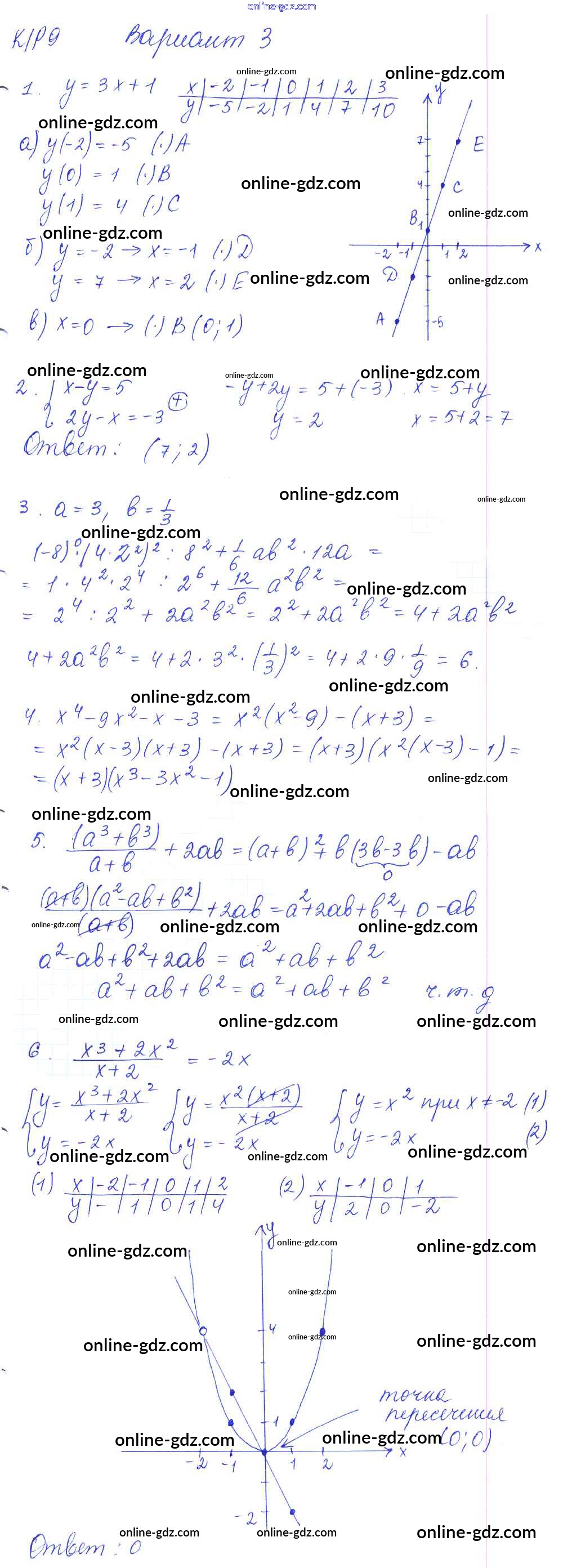 Готовые домашние задания по Алгебре за 7 класс Дидактические материалы Попов УМК 2016 - КР-9 Контрольные работы. Варианты 3
