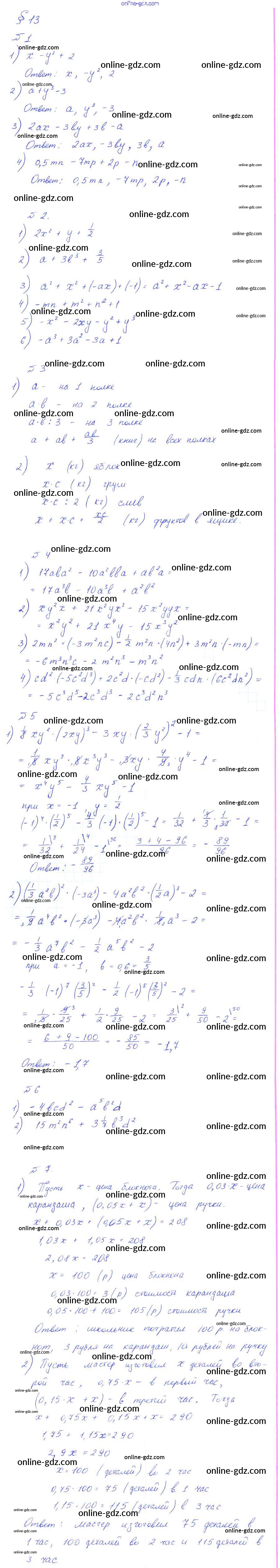 Готовые домашние задания по Алгебре за 7 класс Дидактические материалы Ткачёва, Федорова УМК 2012 - Параграфы 13