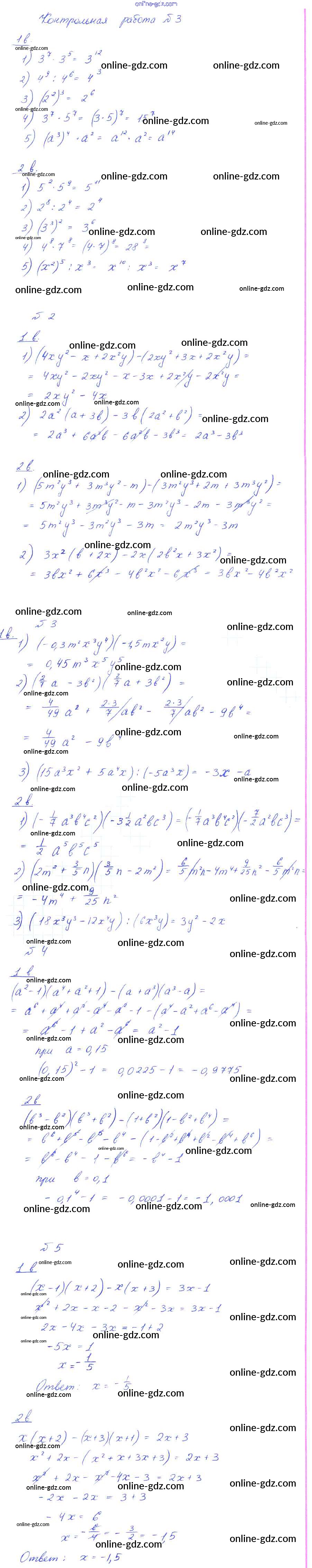 Готовые домашние задания по Алгебре за 7 класс Дидактические материалы Ткачёва, Федорова УМК 2012 - Контрольные работы 3