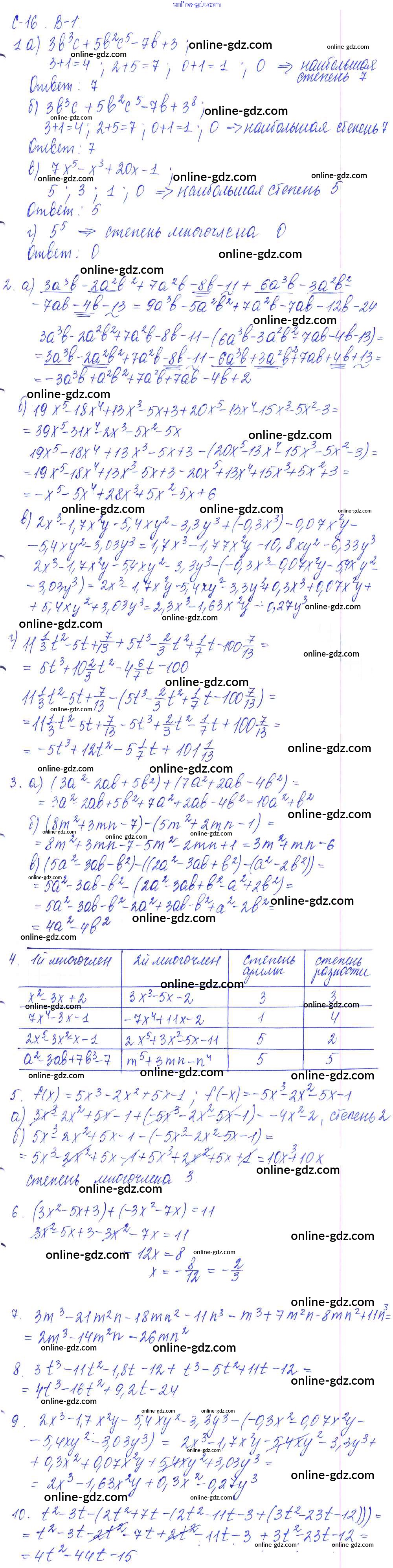 Готовые домашние задания по Алгебре за 7 класс Дидактические материалы Дьяконова УМК 2018 - Ср-16 Самостоятельные работы Вариант 1