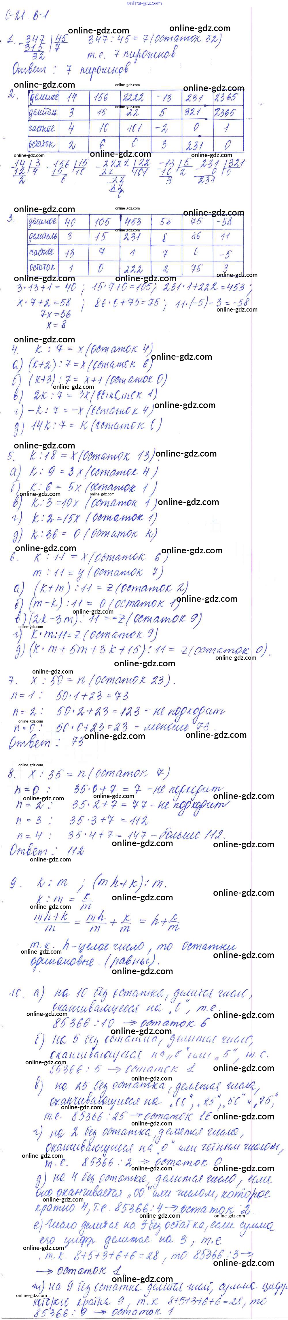 Готовые домашние задания по Алгебре за 7 класс Дидактические материалы Дьяконова УМК 2018 - Ср-21 Самостоятельные работы Вариант 1
