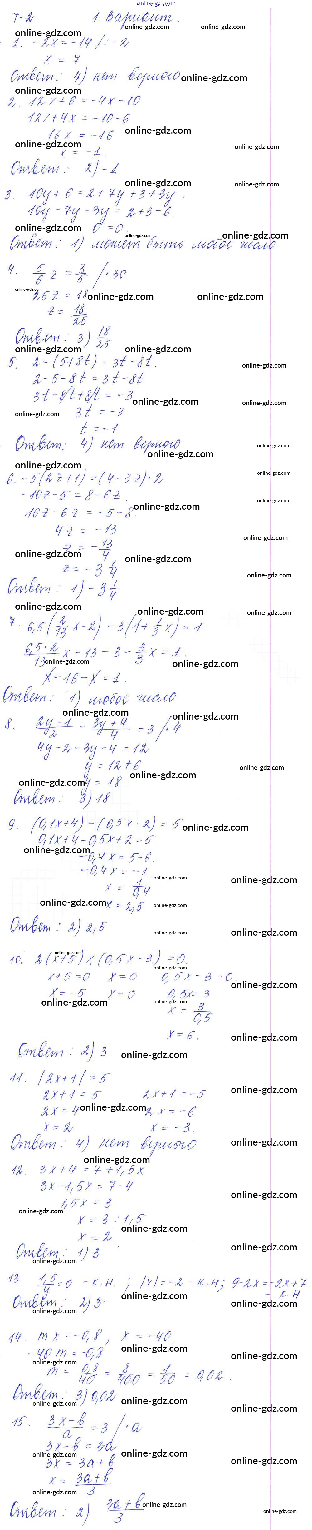 Готовые домашние задания по Алгебре за 7 класс Дидактические материалы Дьяконова УМК 2018 - Тест 2 Тесты Вариант 1