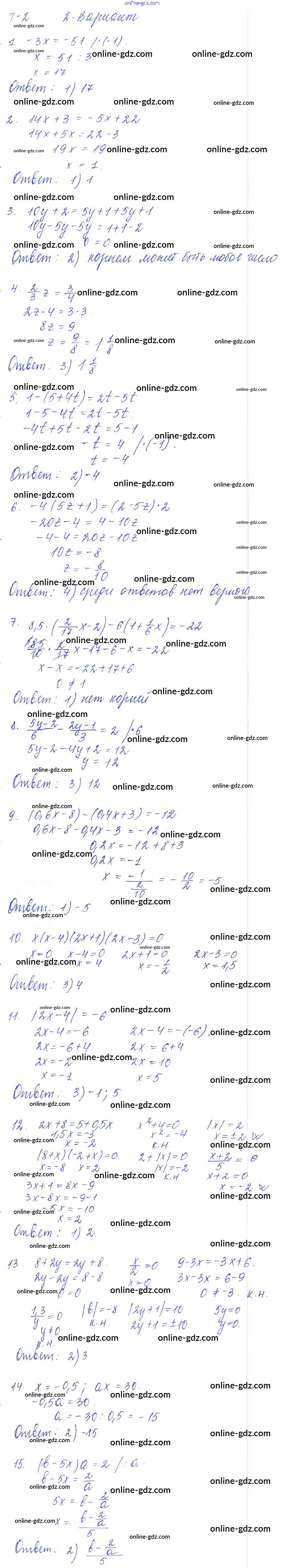 Готовые домашние задания по Алгебре за 7 класс Дидактические материалы Дьяконова УМК 2018 - Тест 2 Тесты Вариант 2