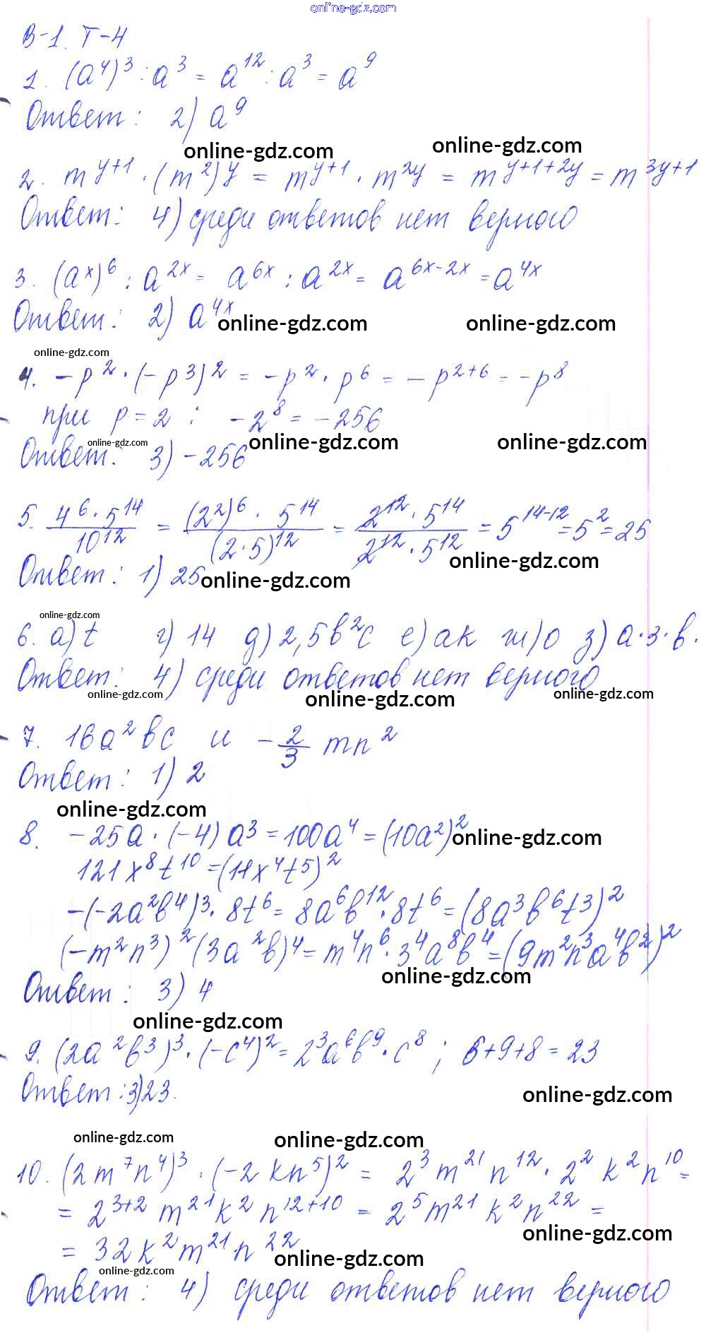 Готовые домашние задания по Алгебре за 7 класс Дидактические материалы Дьяконова УМК 2018 - Тест 4 Тесты Вариант 1