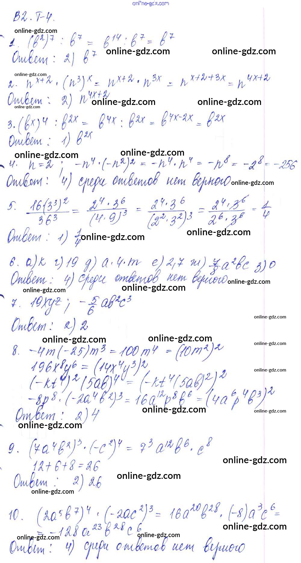 Готовые домашние задания по Алгебре за 7 класс Дидактические материалы Дьяконова УМК 2018 - Тест 4 Тесты Вариант 2