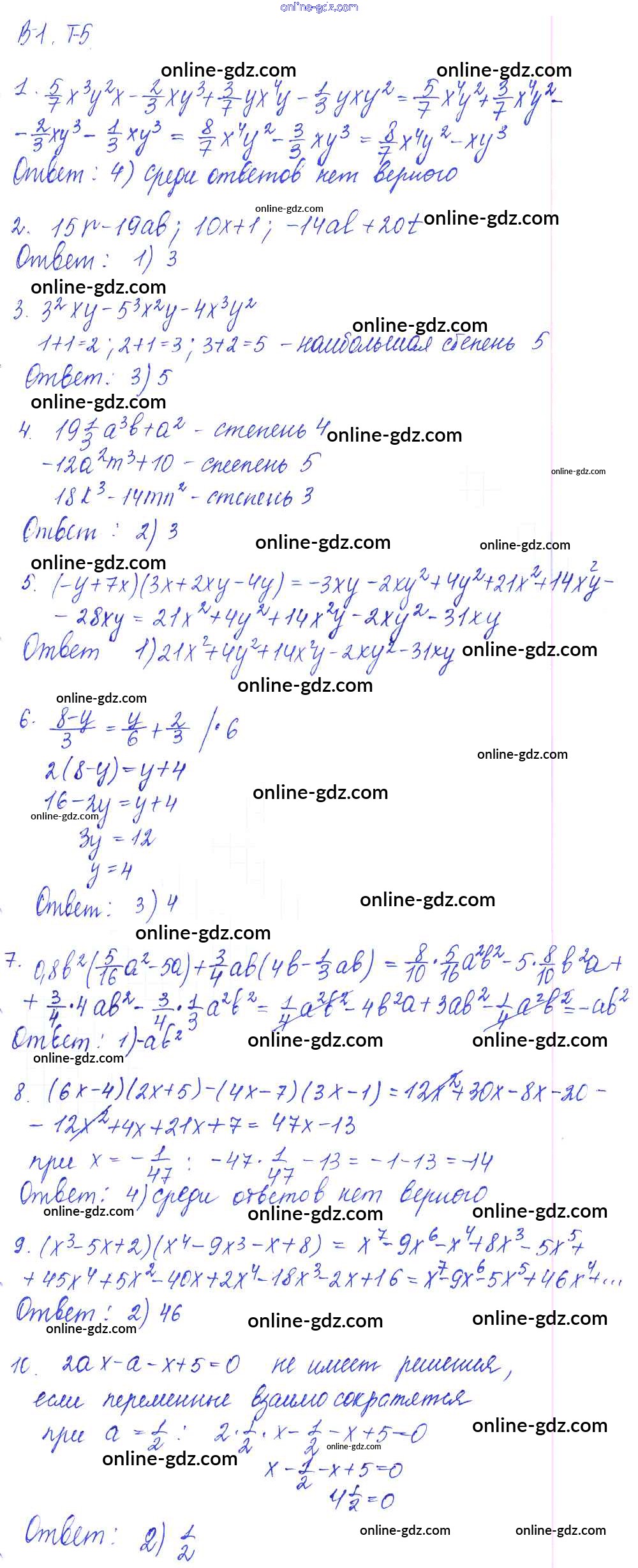 Готовые домашние задания по Алгебре за 7 класс Дидактические материалы Дьяконова УМК 2018 - Тест 5 Тесты Вариант 1