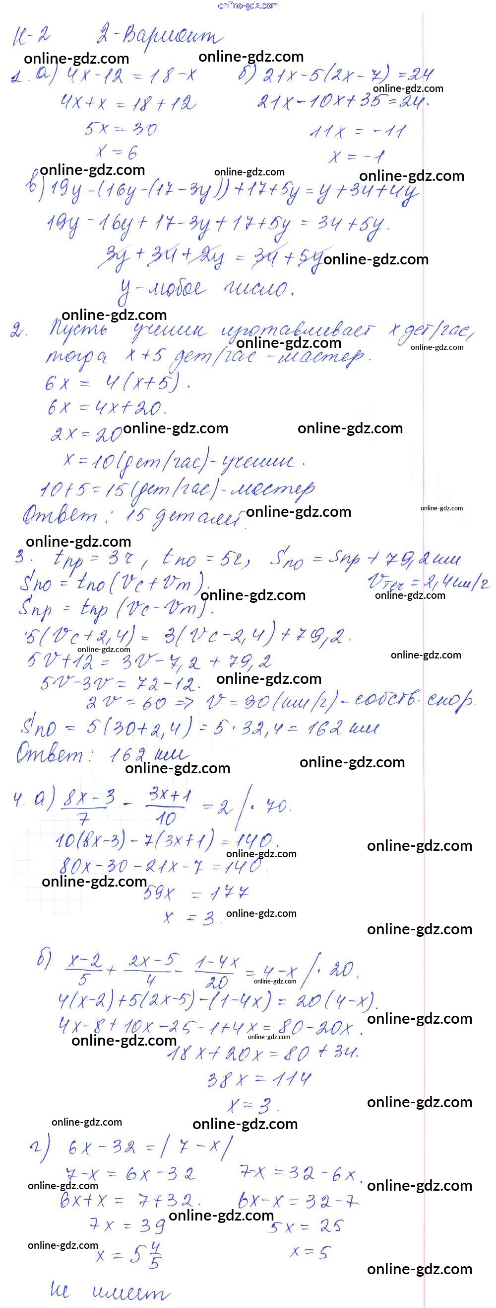 Готовые домашние задания по Алгебре за 7 класс Дидактические материалы Дьяконова УМК 2018 - КР-2 Контрольные работы Вариант 2