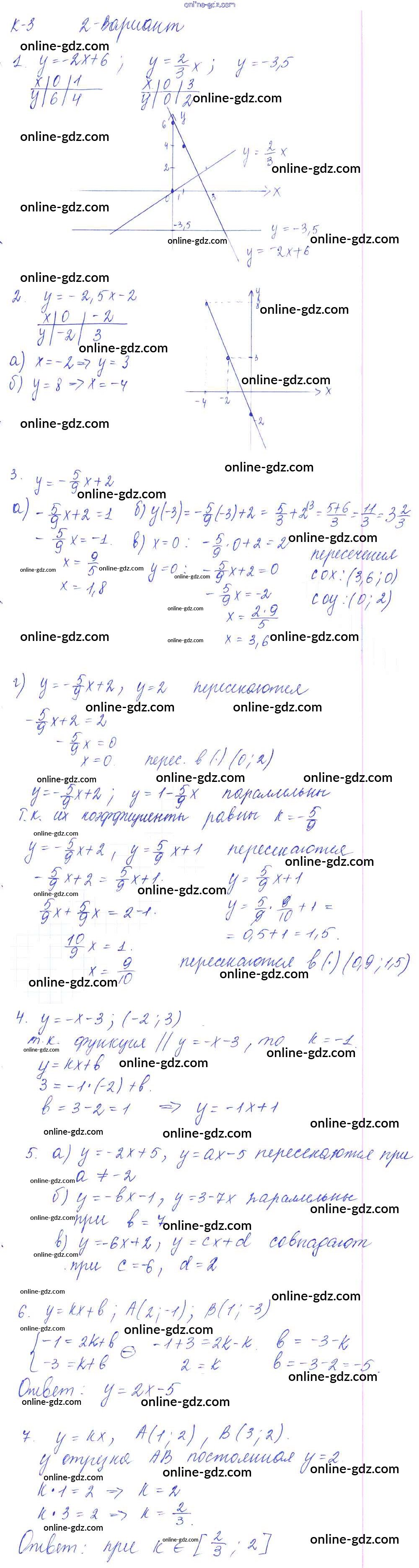 Готовые домашние задания по Алгебре за 7 класс Дидактические материалы Дьяконова УМК 2018 - КР-3 Контрольные работы Вариант 2