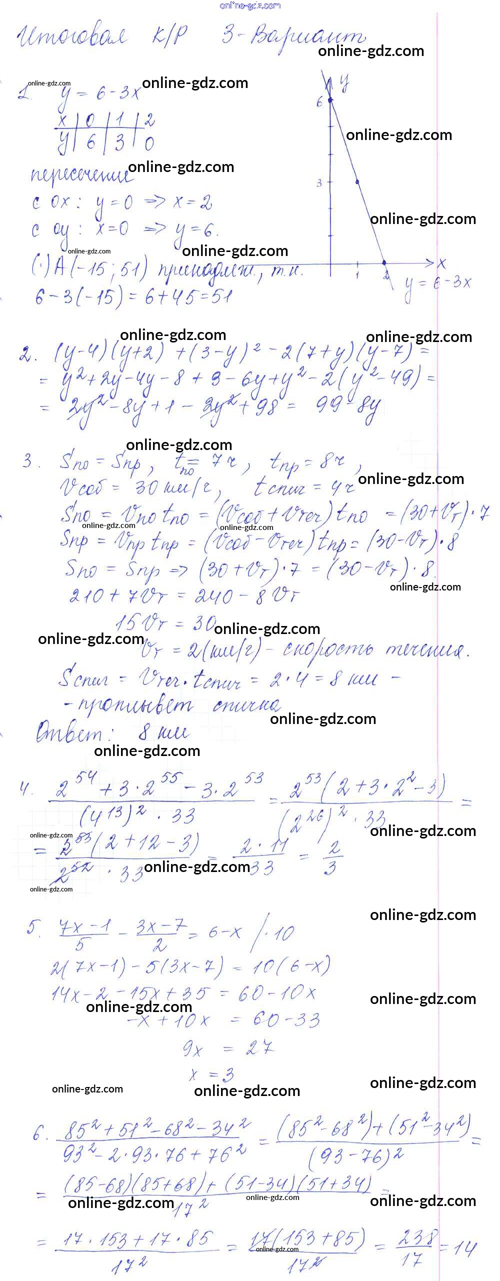 Готовые домашние задания по Алгебре за 7 класс Дидактические материалы Дьяконова УМК 2018 - Итоговая контрольная работа Контрольные работы Вариант 3