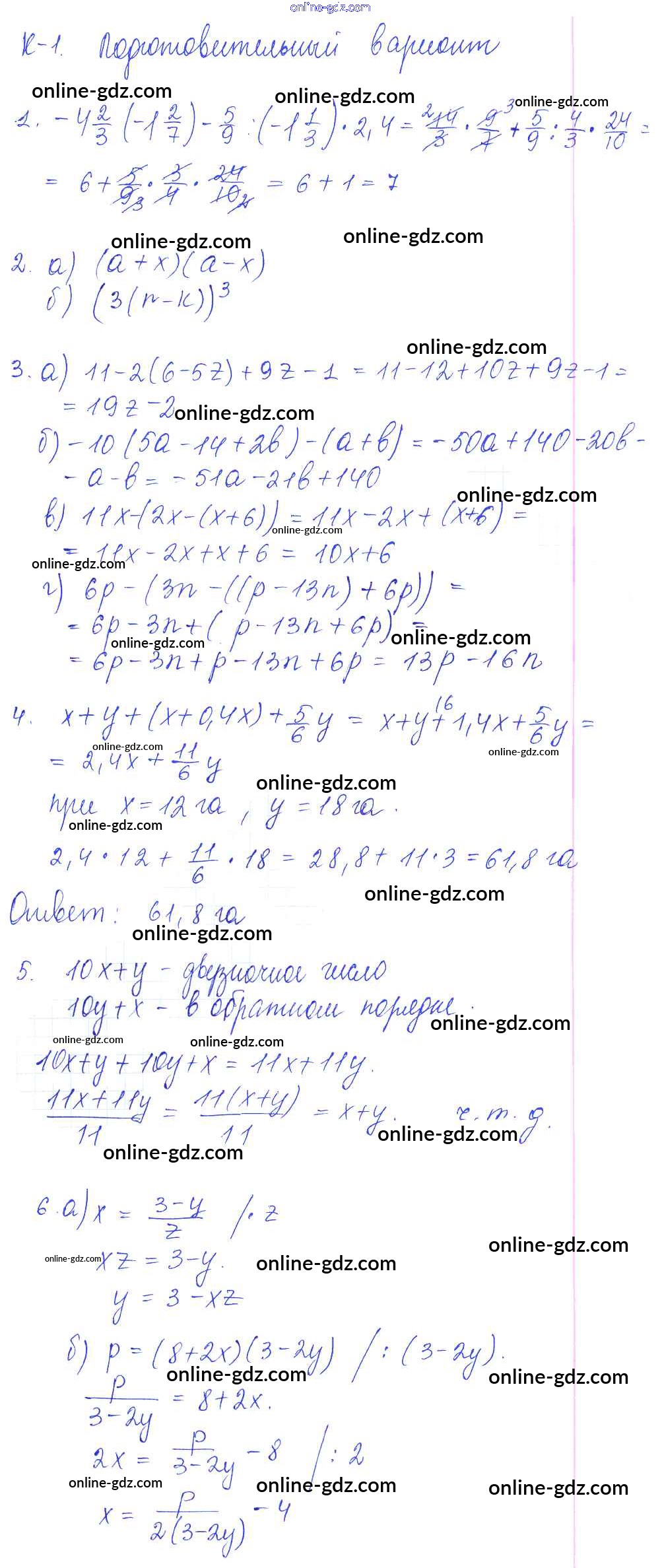 Готовые домашние задания по Алгебре за 7 класс Дидактические материалы Дьяконова УМК 2018 - КР-1 Контрольные работы Подготовительный вариант