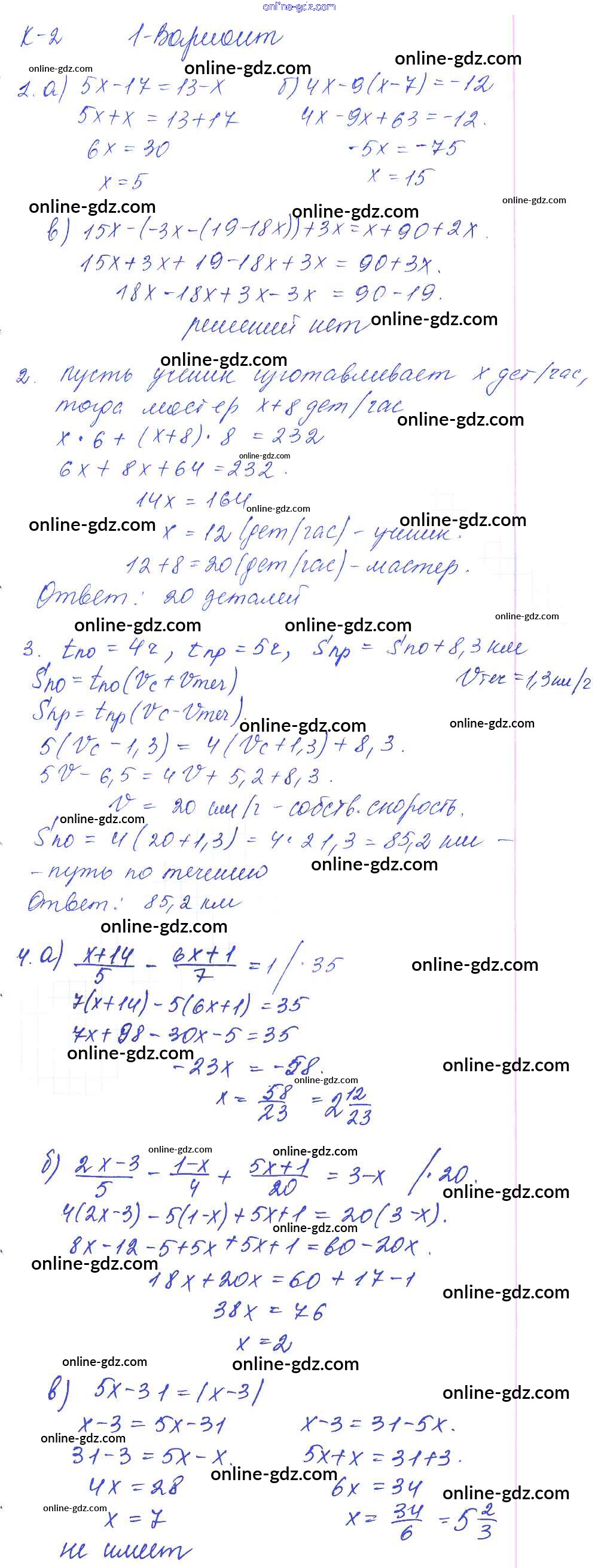 Готовые домашние задания по Алгебре за 7 класс Дидактические материалы Дьяконова УМК 2018 - КР-2 Контрольные работы Вариант 1