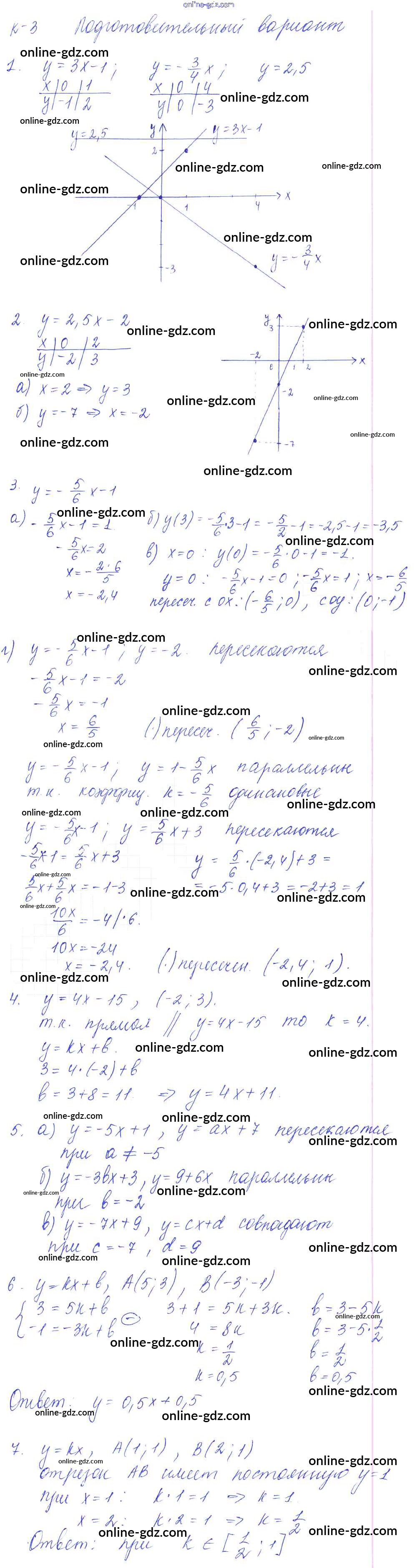 Готовые домашние задания по Алгебре за 7 класс Дидактические материалы Дьяконова УМК 2018 - КР-3 Контрольные работы Подготовительный вариант