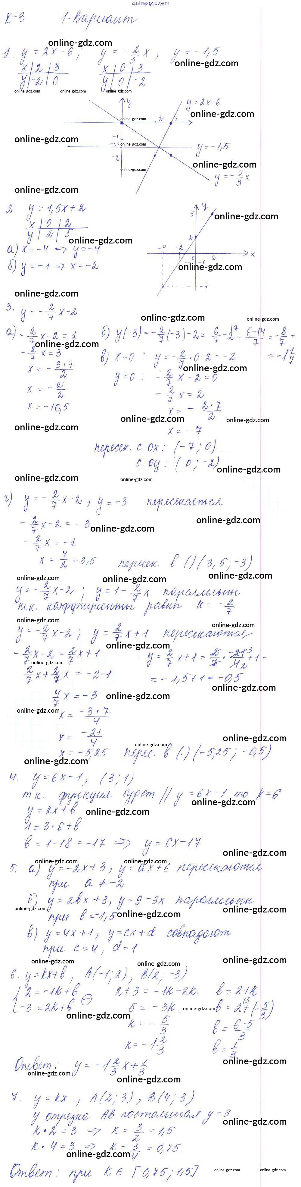 Готовые домашние задания по Алгебре за 7 класс Дидактические материалы Дьяконова УМК 2018 - КР-3 Контрольные работы Вариант 1