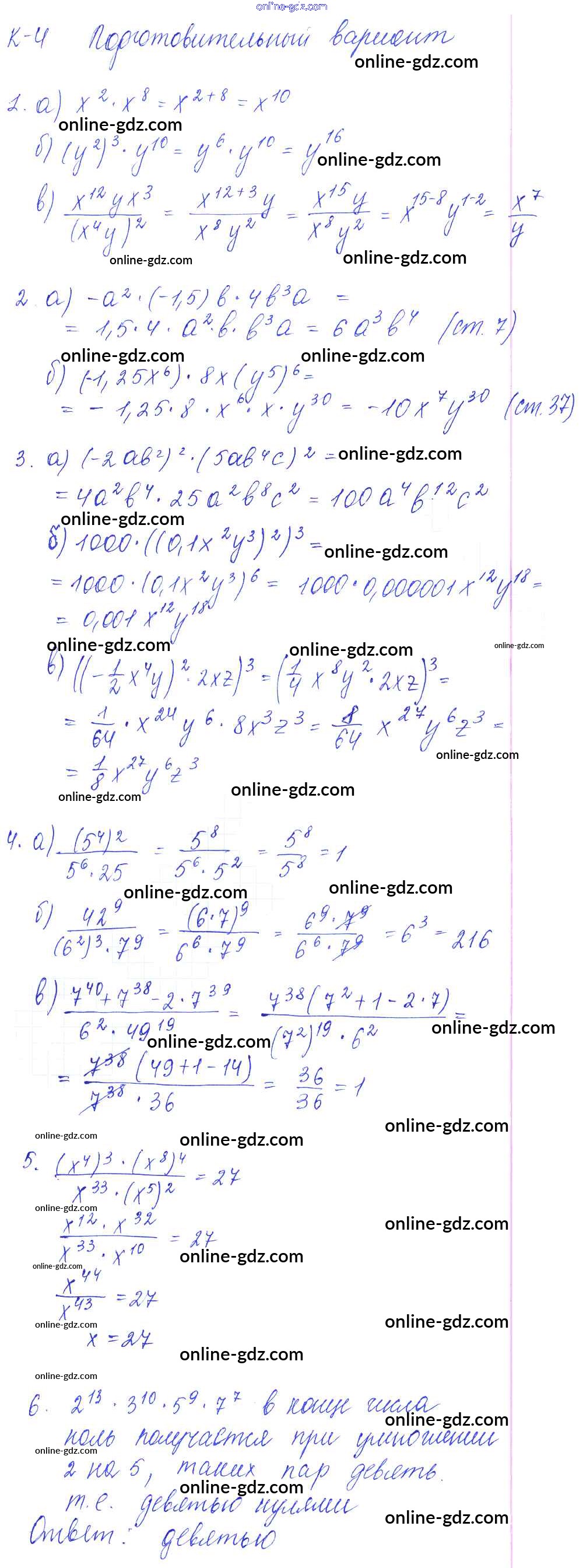 Готовые домашние задания по Алгебре за 7 класс Дидактические материалы Дьяконова УМК 2018 - КР-4 Контрольные работы Подготовительный вариант