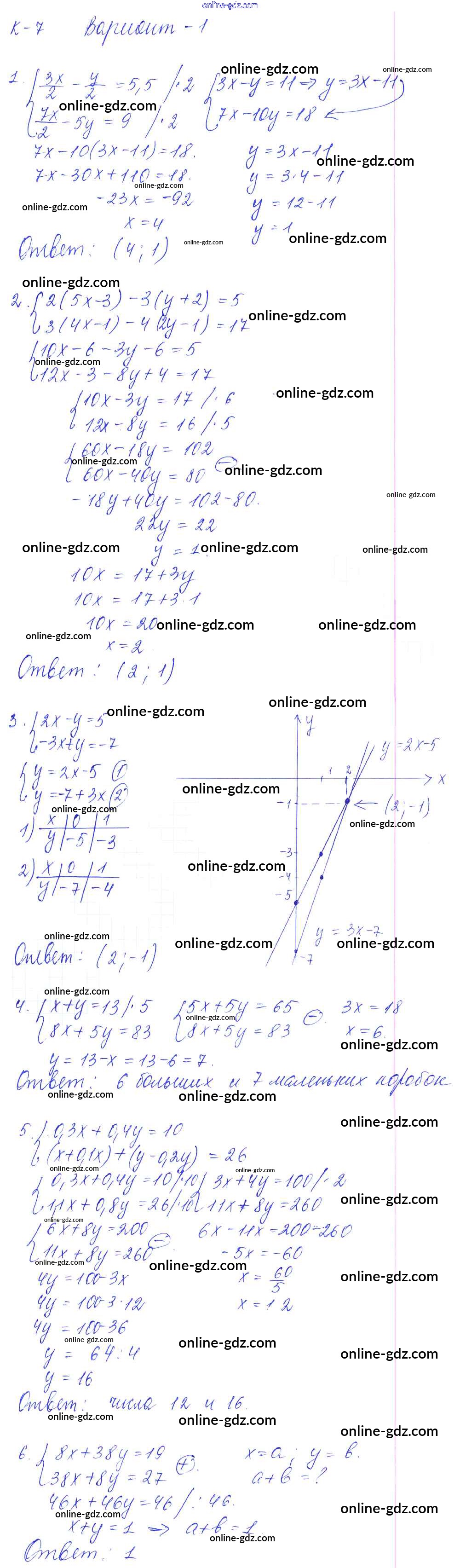 Готовые домашние задания по Алгебре за 7 класс Дидактические материалы Дьяконова УМК 2018 - КР-7 Контрольные работы Вариант 1