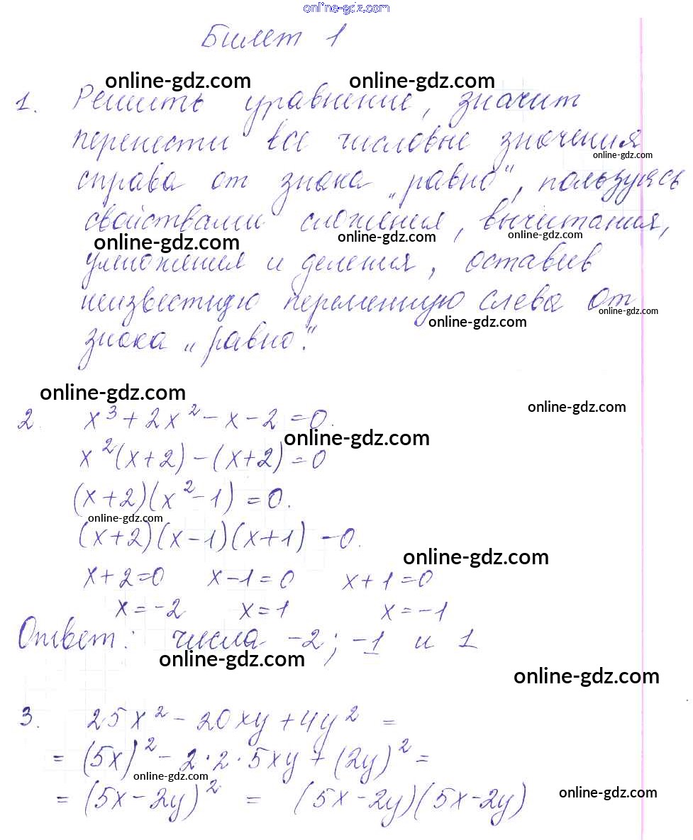 Готовые домашние задания по Алгебре за 7 класс Дидактические материалы Дьяконова УМК 2018 - Билеты 1