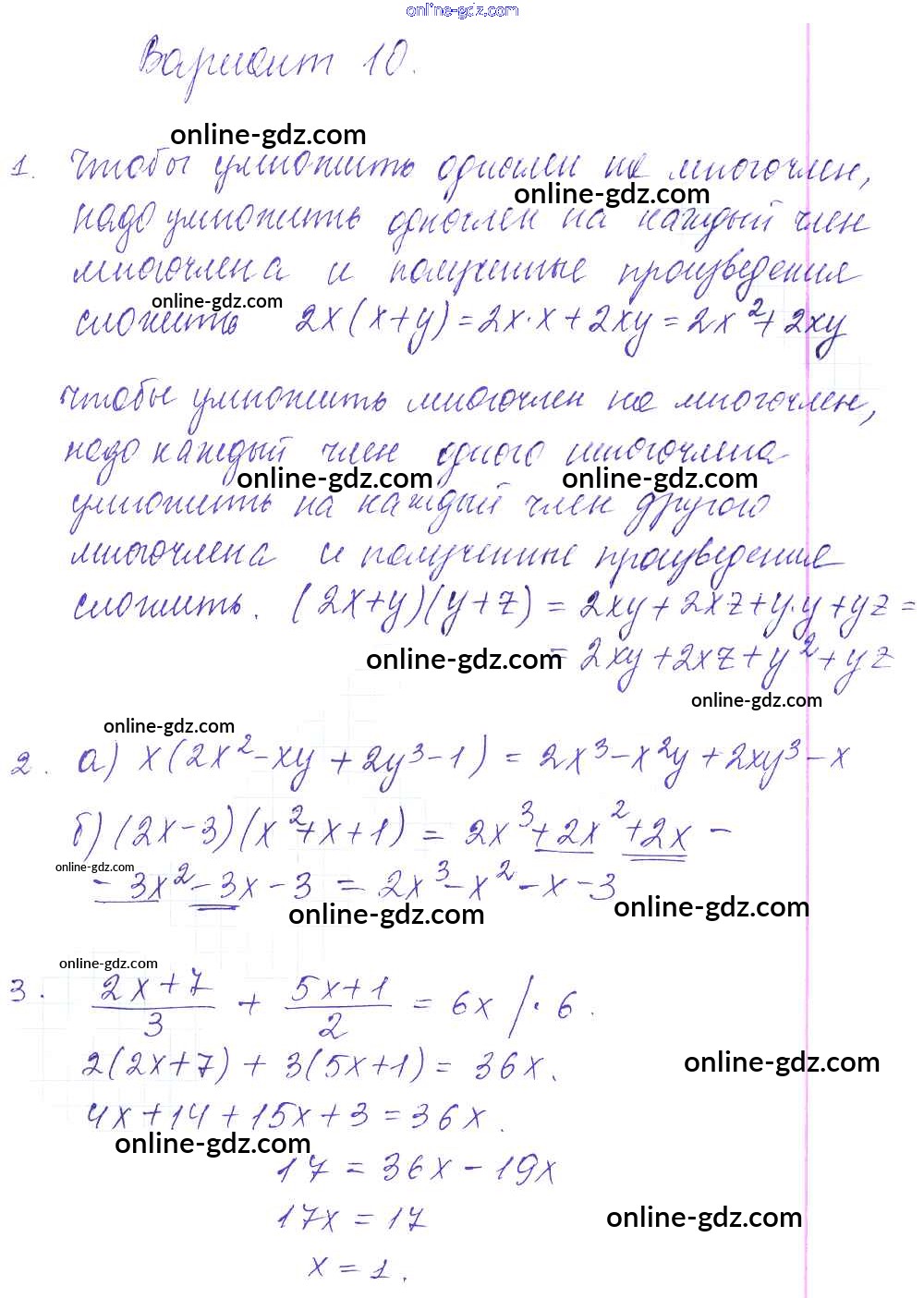 Готовые домашние задания по Алгебре за 7 класс Дидактические материалы Дьяконова УМК 2018 - Билеты 10