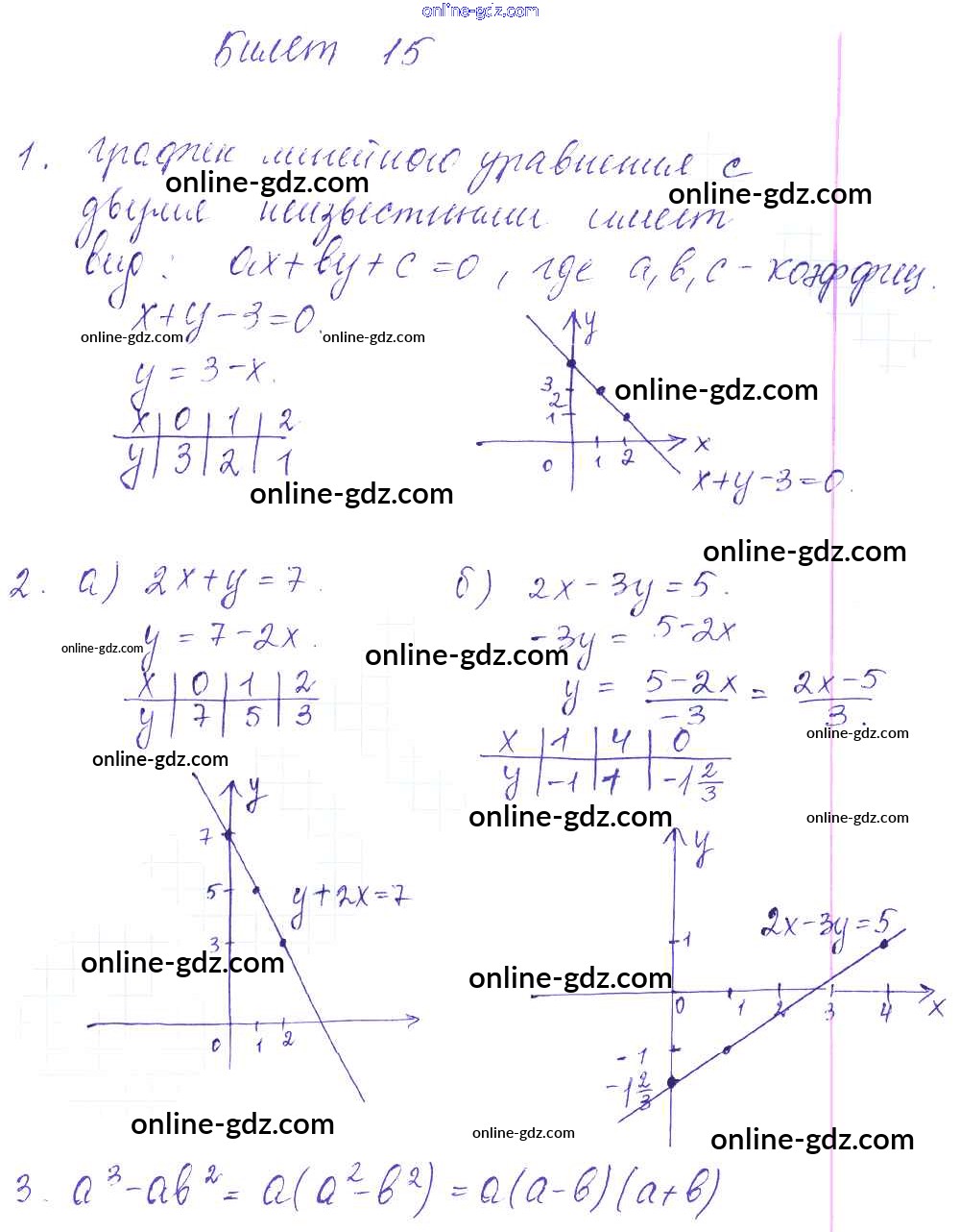 Готовые домашние задания по Алгебре за 7 класс Дидактические материалы Дьяконова УМК 2018 - Билеты 15