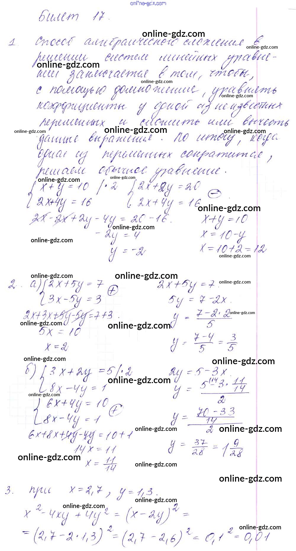 Готовые домашние задания по Алгебре за 7 класс Дидактические материалы Дьяконова УМК 2018 - Билеты 17