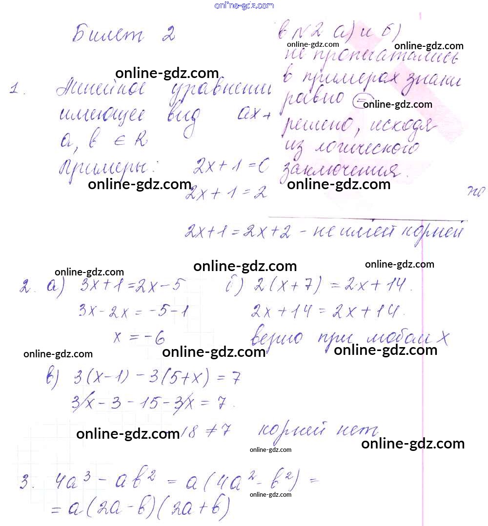 Готовые домашние задания по Алгебре за 7 класс Дидактические материалы Дьяконова УМК 2018 - Билеты 2