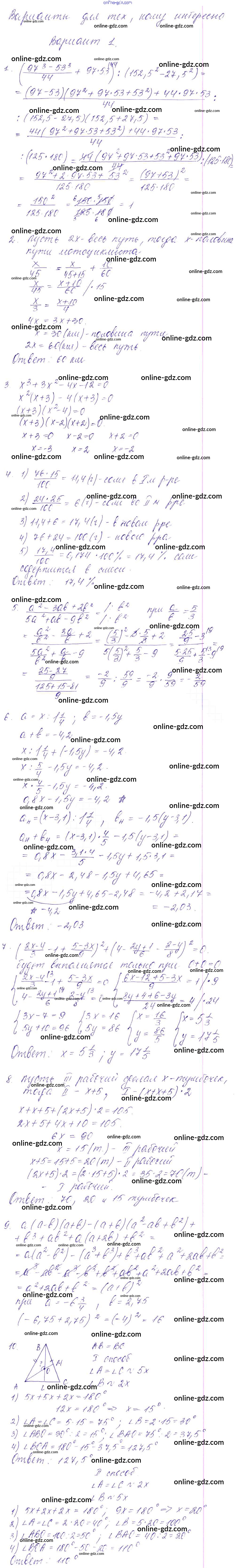 Готовые домашние задания по Алгебре за 7 класс Дидактические материалы Дьяконова УМК 2018 - Для тех, кому интересно Вариант 1