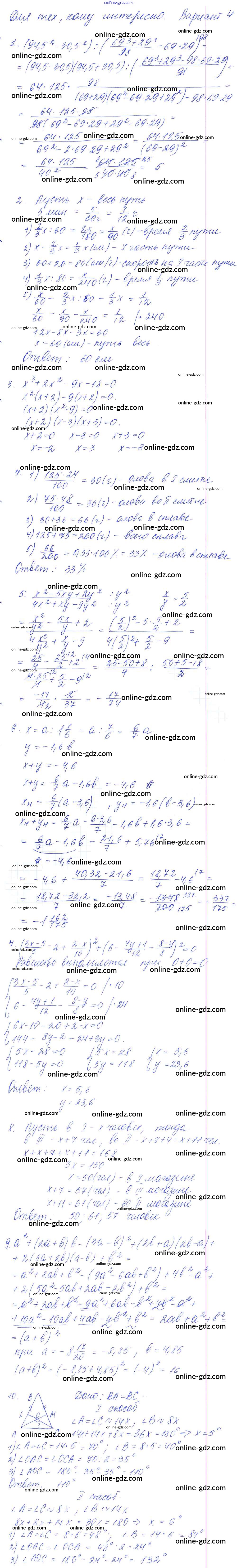 Готовые домашние задания по Алгебре за 7 класс Дидактические материалы Дьяконова УМК 2018 - Для тех, кому интересно Вариант 4