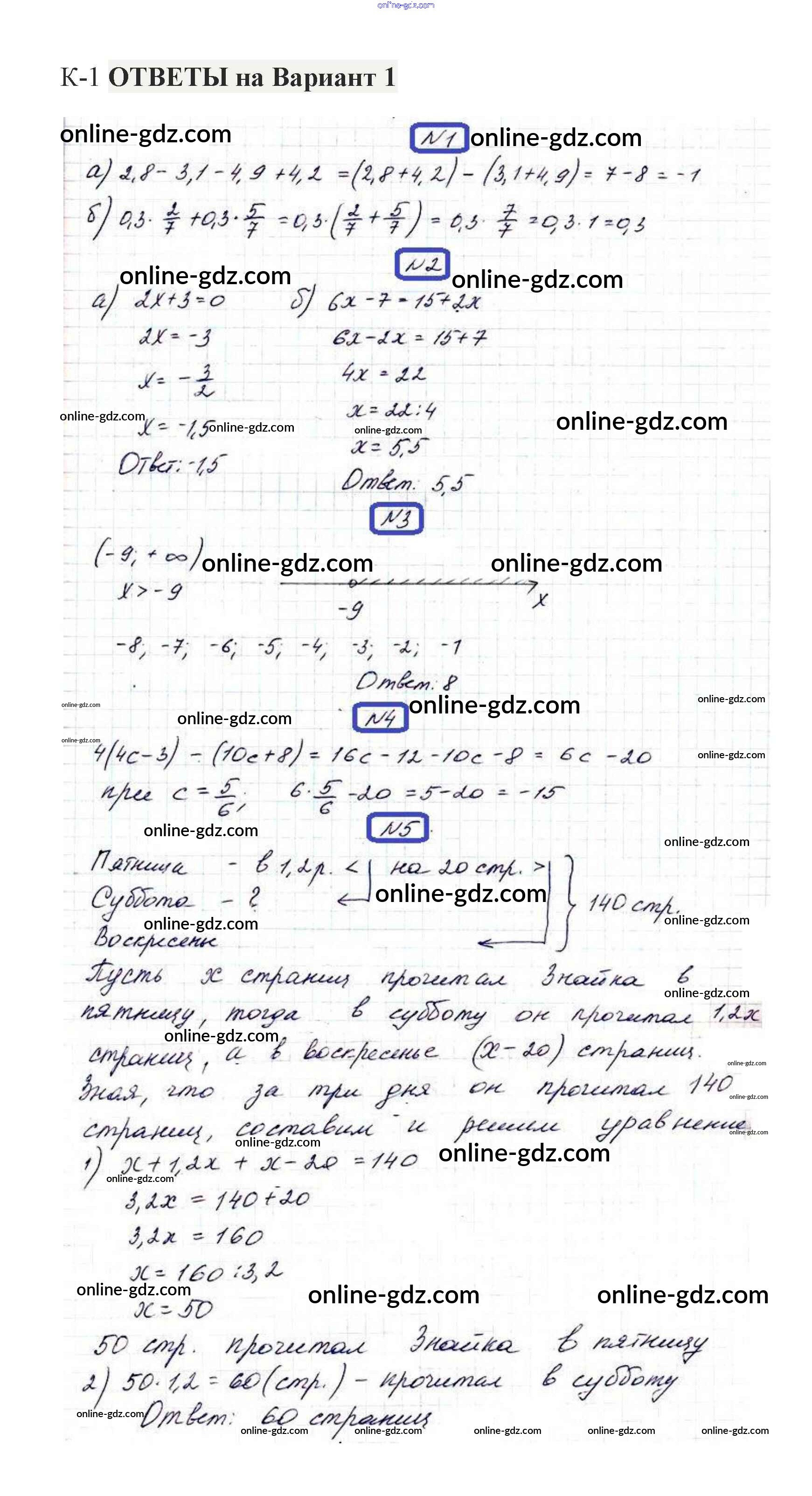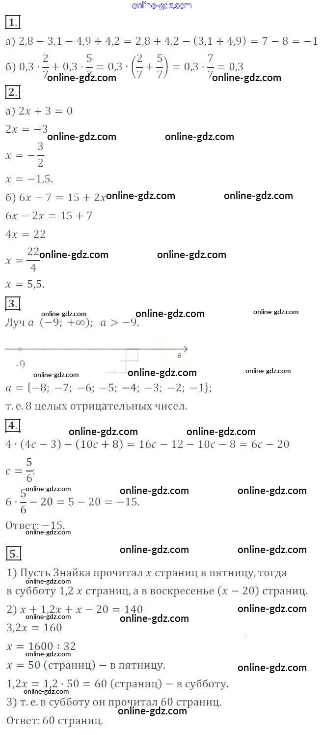 Готовые домашние задания по Алгебре за 7 класс Контрольные работы Александрова 2017 - КР-1. Варианты Контрольные работы 1