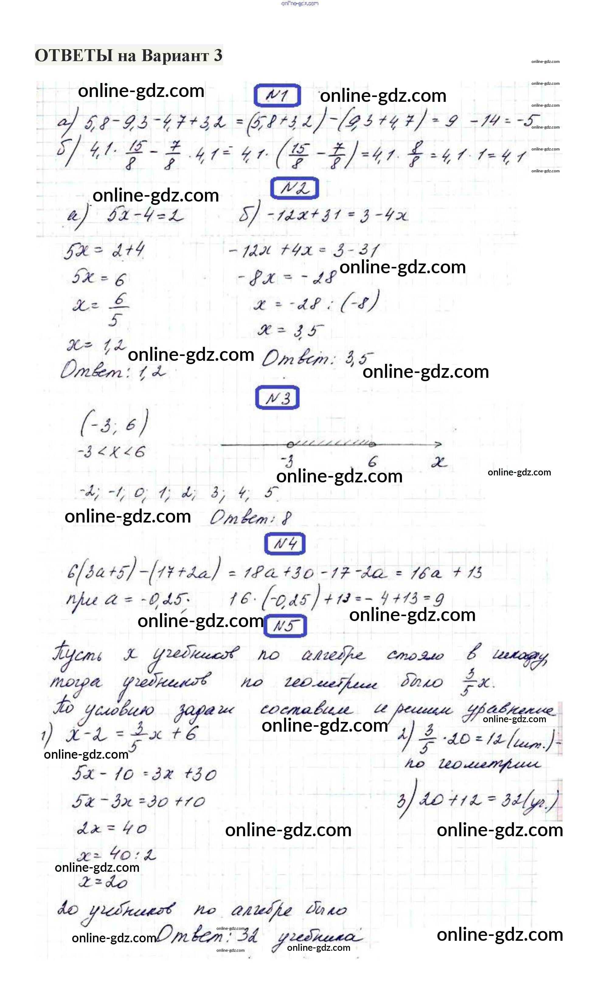 Готовые домашние задания по Алгебре за 7 класс Контрольные работы Александрова 2017 - КР-1. Варианты Контрольные работы 3