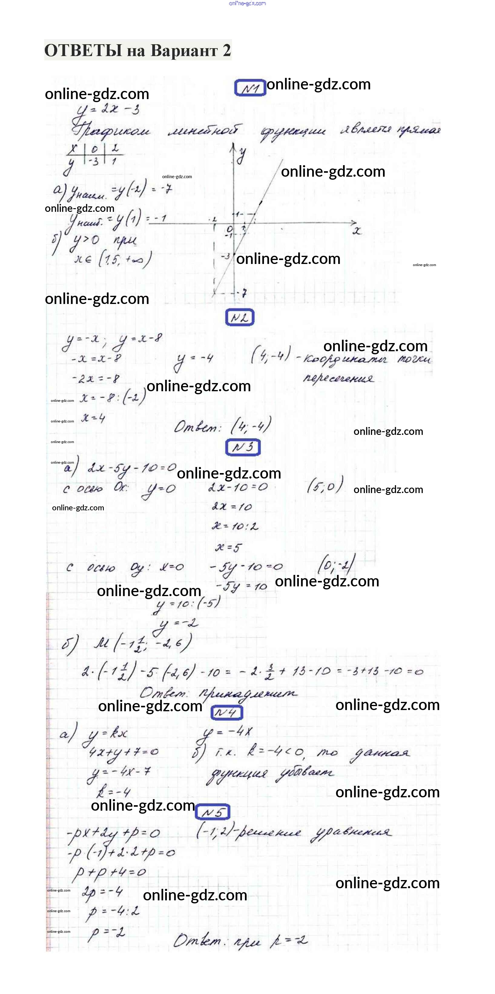Готовые домашние задания по Алгебре за 7 класс Контрольные работы Александрова 2017 - КР-2. Варианты Контрольные работы 2
