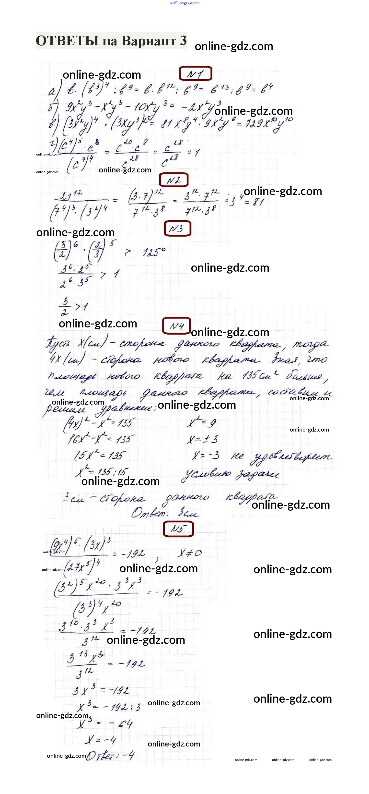 Готовые домашние задания по Алгебре за 7 класс Контрольные работы Александрова 2017 - КР-4. Варианты Контрольные работы 3