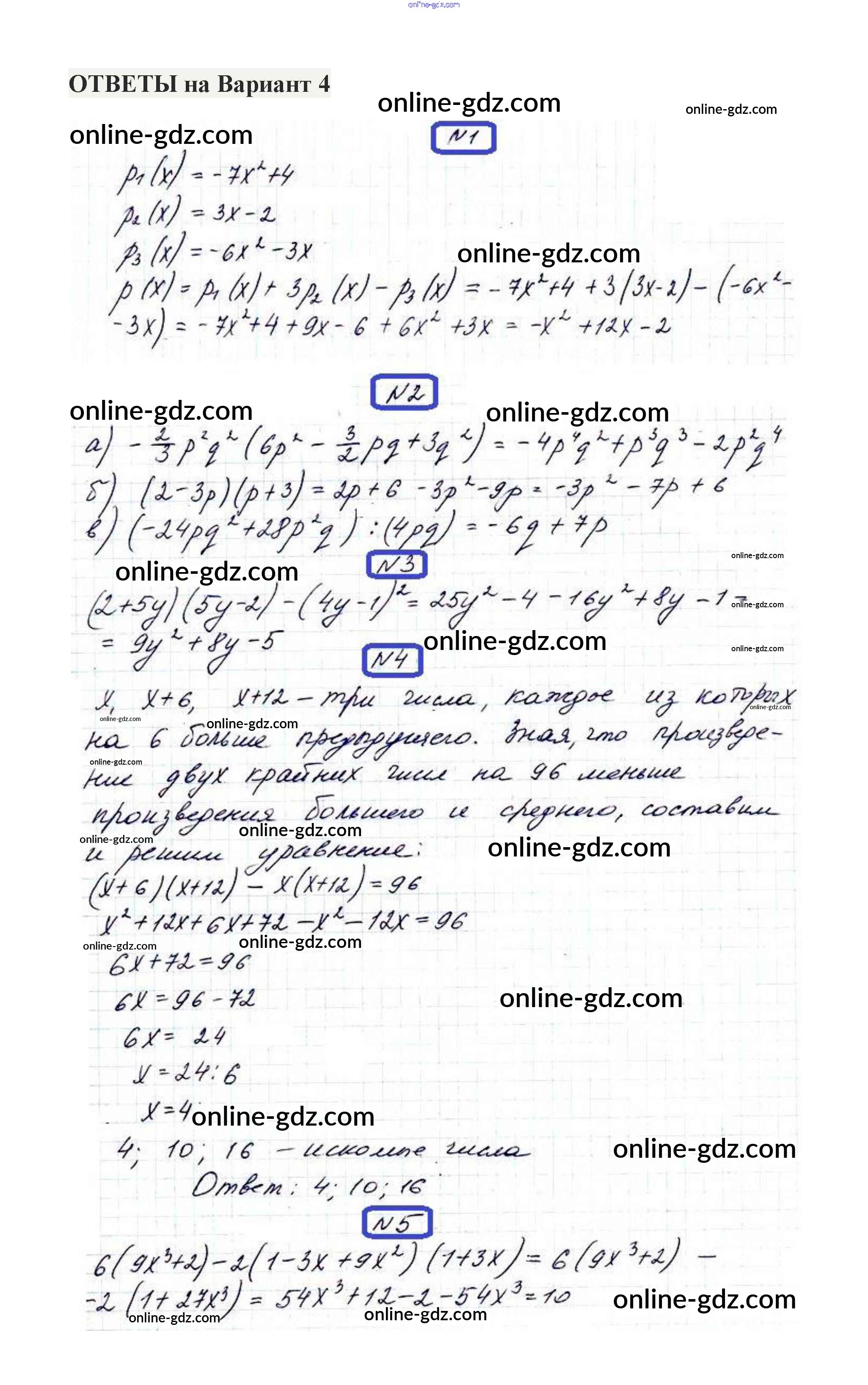 Готовые домашние задания по Алгебре за 7 класс Контрольные работы Александрова 2017 - КР-5. Варианты Контрольные работы 4