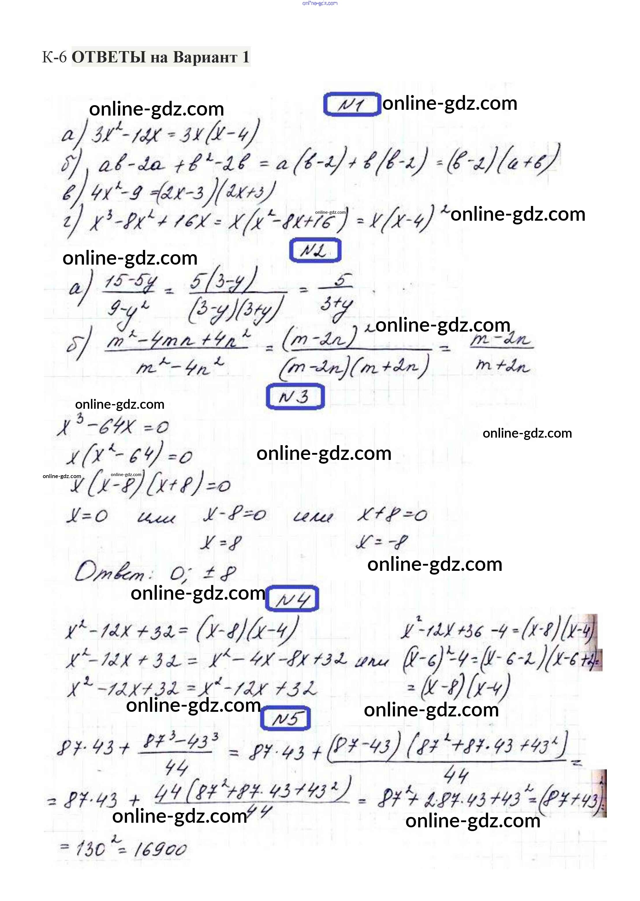 Готовые домашние задания по Алгебре за 7 класс Контрольные работы Александрова 2017 - КР-6. Варианты Контрольные работы 1