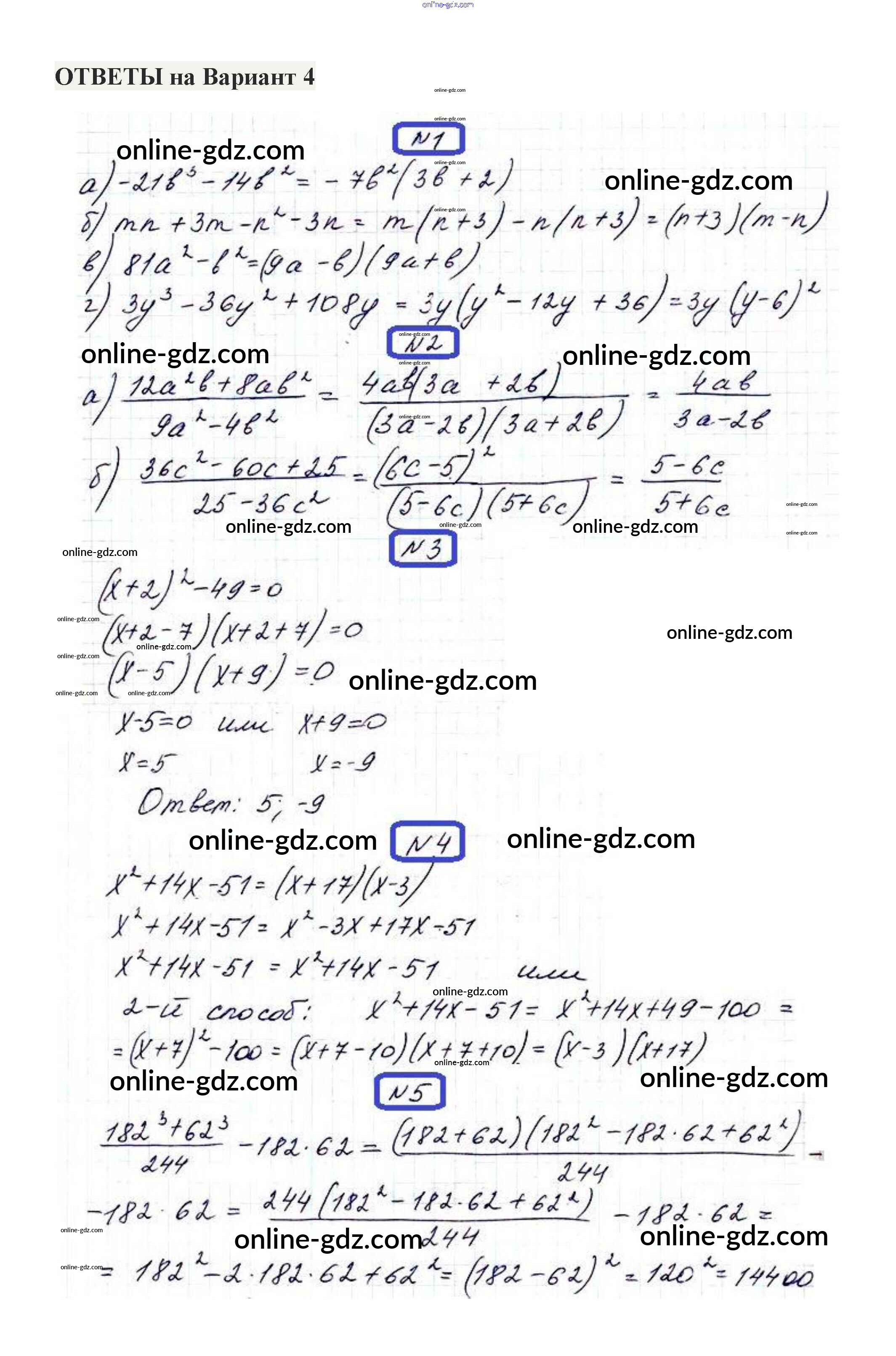 Готовые домашние задания по Алгебре за 7 класс Контрольные работы Александрова 2017 - КР-6. Варианты Контрольные работы 4