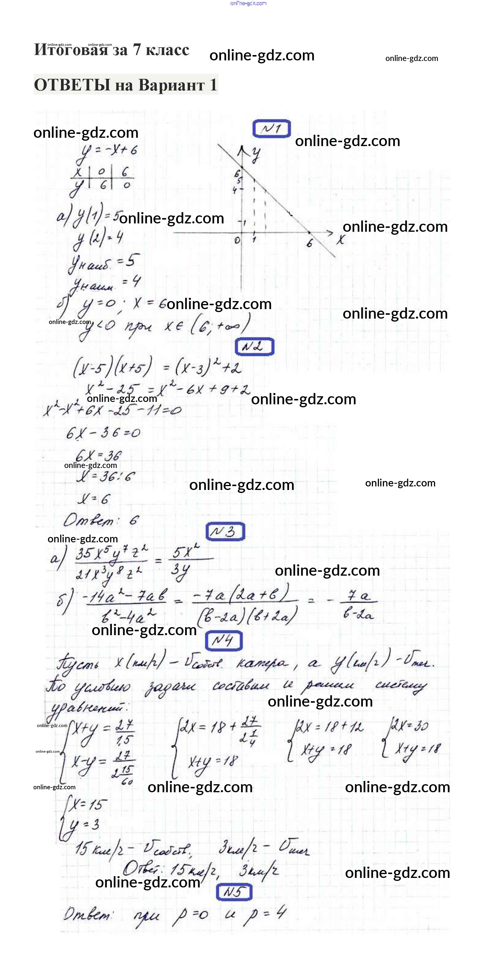 Готовые домашние задания по Алгебре за 7 класс Контрольные работы Александрова 2017 - Итоговая контрольная работа. Варианты Контрольные работы 1