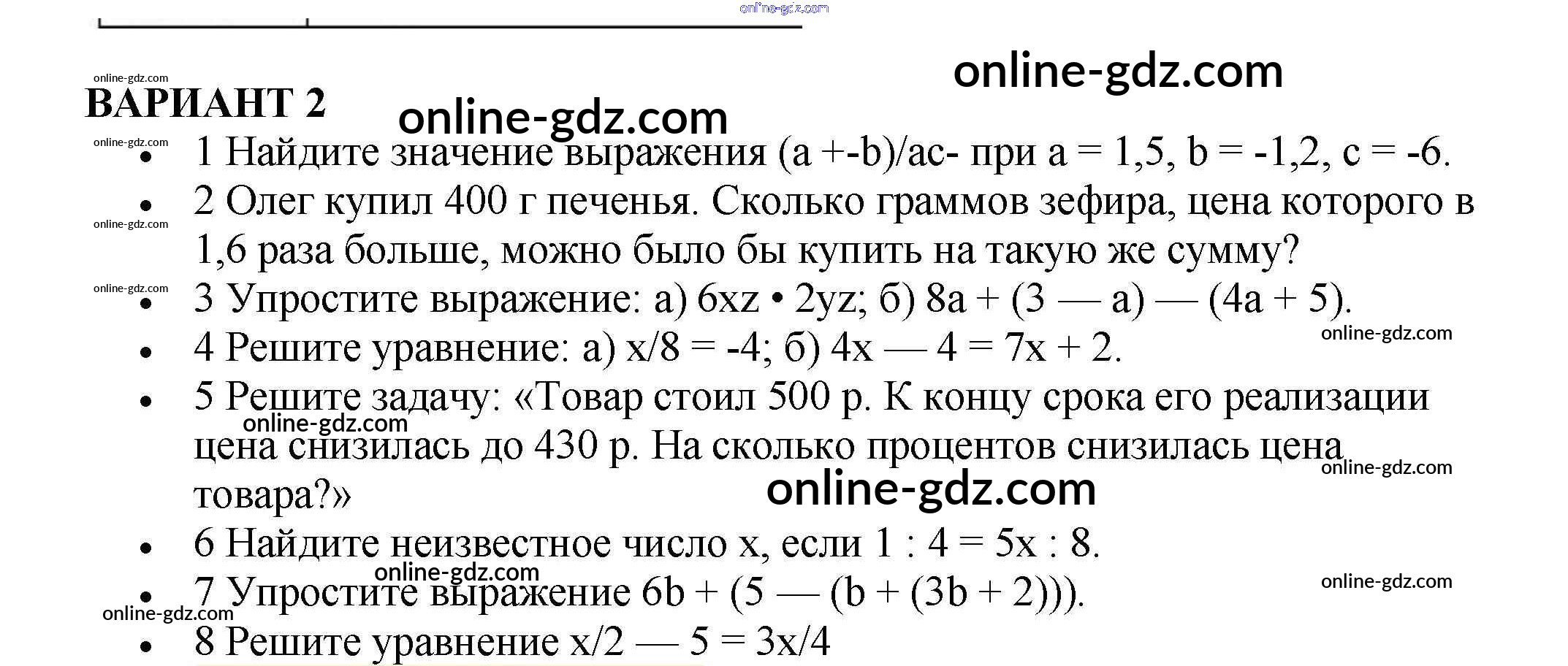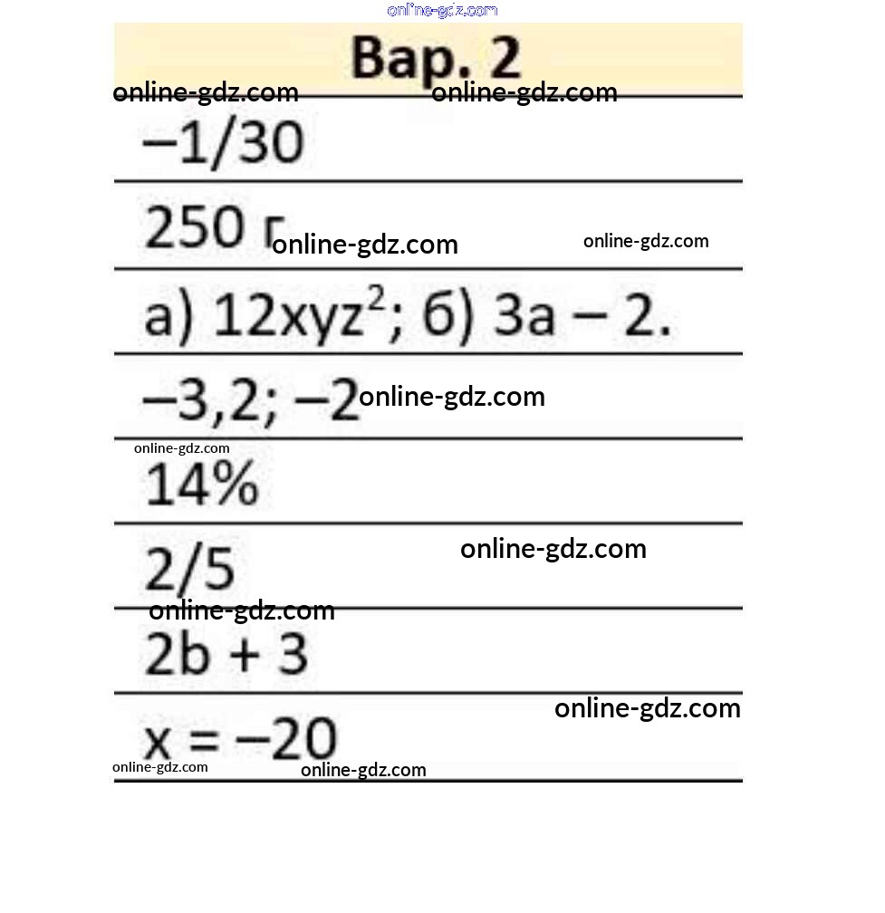 Готовые домашние задания по Алгебре за 7 класс Контрольные работы Кузнецова, Минаева 2018 - Контрольная работа №10. Итоговая работа за I полугодие Вариант 2